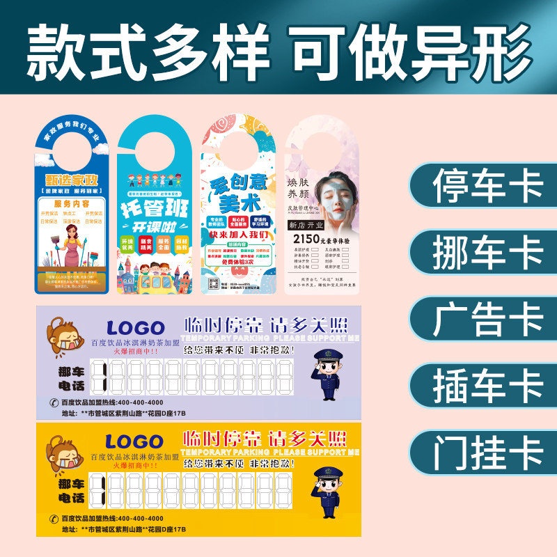汽车临时停靠电话号码牌插车卡广告停车卡定做挪车卡移车卡片保险房地产定制广告纸质名片订制作