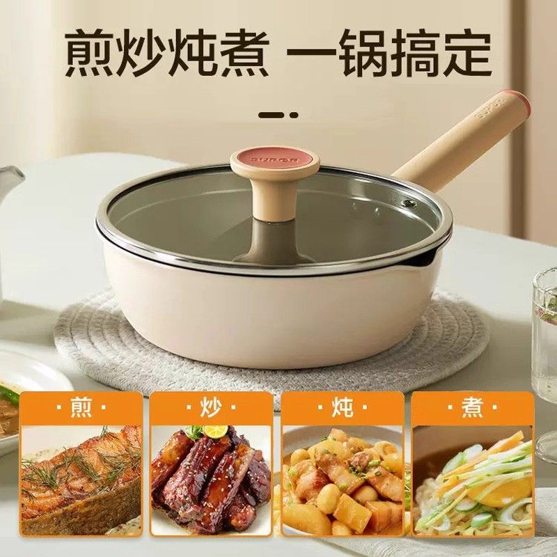 九阳陶瓷不粘锅钛锅家用平底炒锅电磁炉专用炒菜锅官方旗舰正品炊