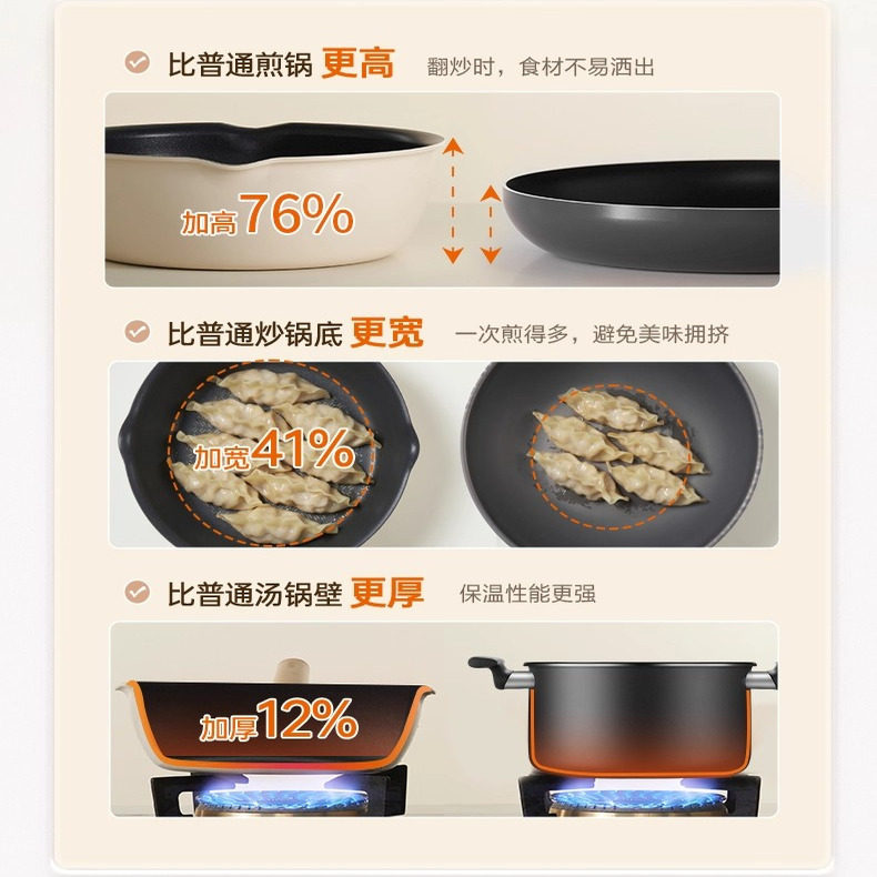 苏泊尔轻量火红点不粘煎锅平底加深煎炒锅多功能家用燃气电磁通用