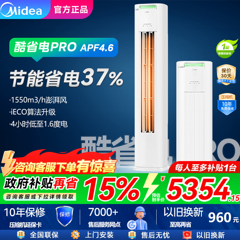 【菜鸟】美的空调酷省电柜机pro+ultra2匹3匹一级能效变频立柜式