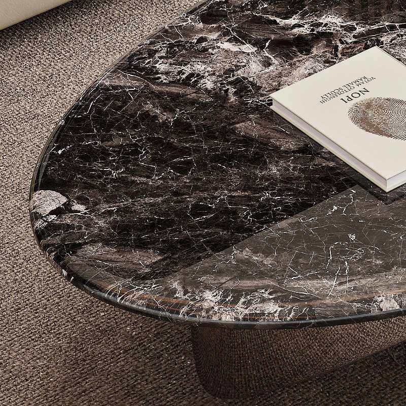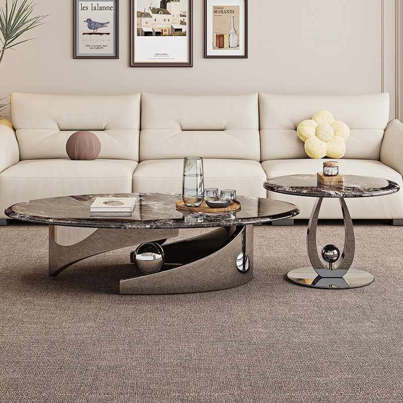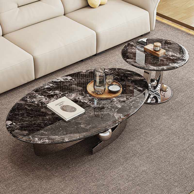 布雷尔意式轻奢茶几组合客厅小户型天然微晶石椭圆形茶几创意茶桌