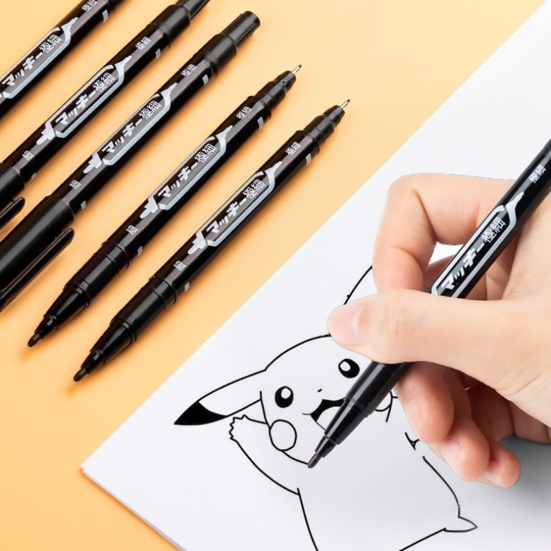 粗细双头勾线笔黑色油性画画防水记号笔美术专用描边笔小学生儿童画笔幼儿园勾边笔油性笔大头笔油笔油漆笔