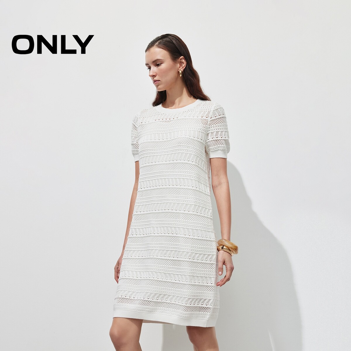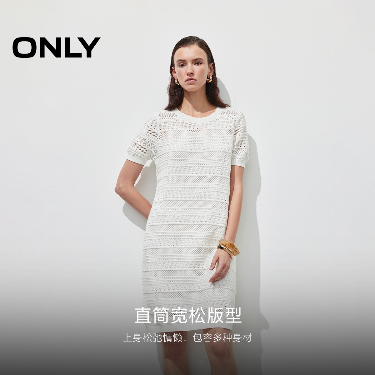 百搭针织裙 舒适直筒版型 品质横条镂空针织