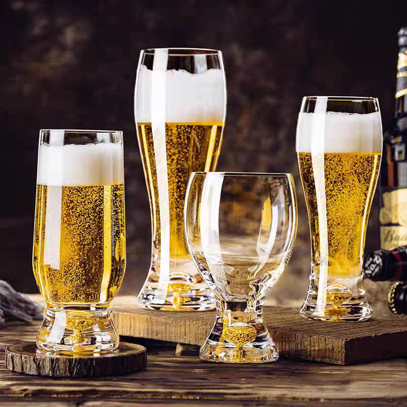 精选金箔绿松石蓝山水晶大容量精酿啤酒杯家用杯子套装创意批发