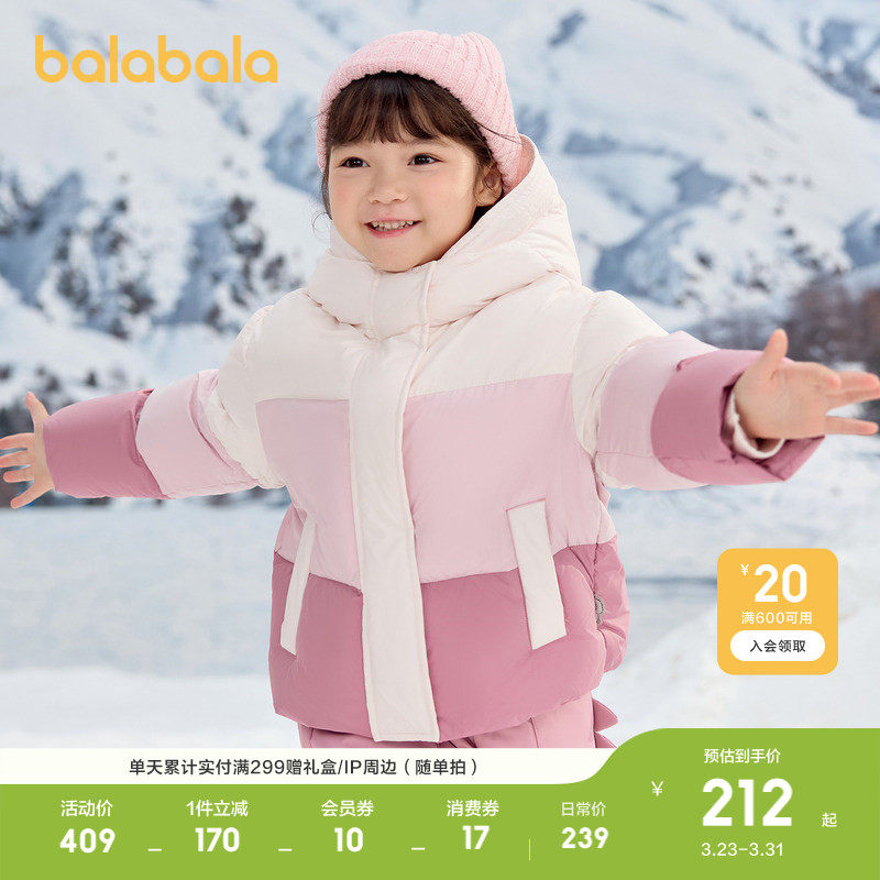 巴拉巴拉童装儿童羽绒服女童冬装连帽外套甜上衣流行舒适户外潮款