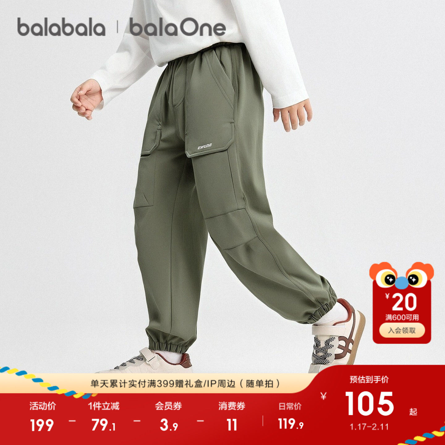 【balaOne】巴拉巴拉童装儿童工装裤男童2025秋装新款长裤束口裤