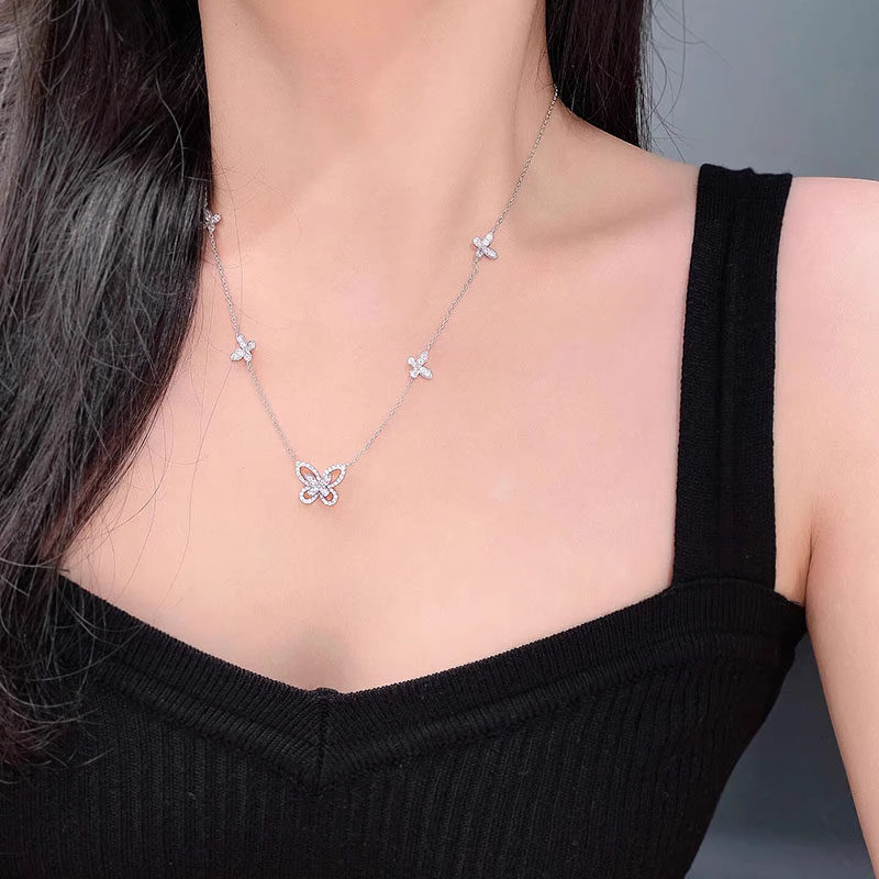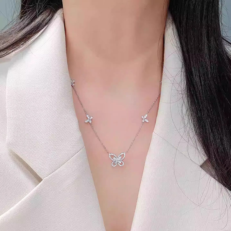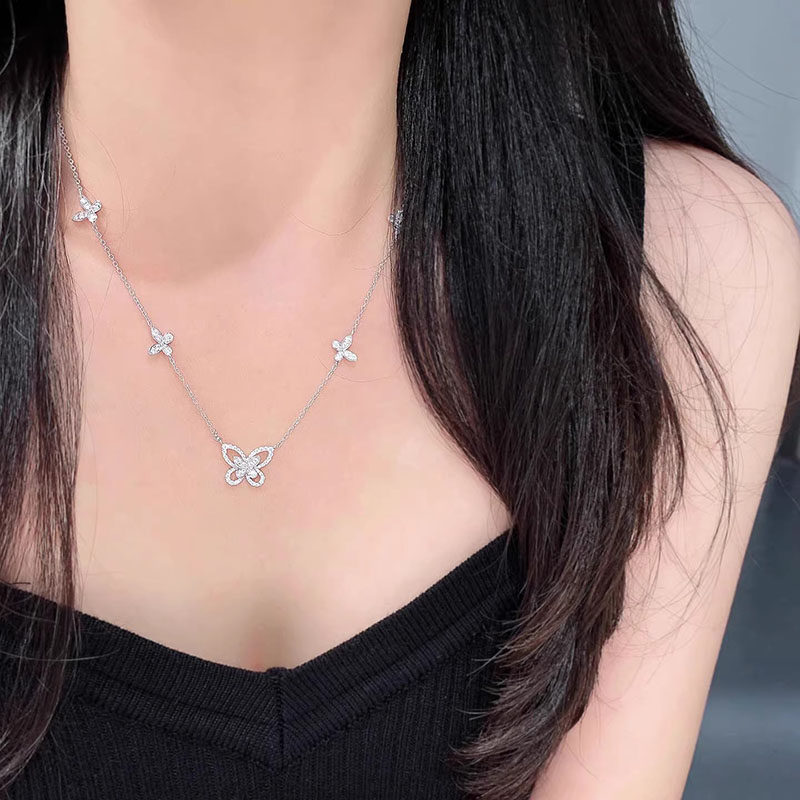 蝴蝶结水滴锆石项链镂空扇形项链女臻致星河高级感锁骨链