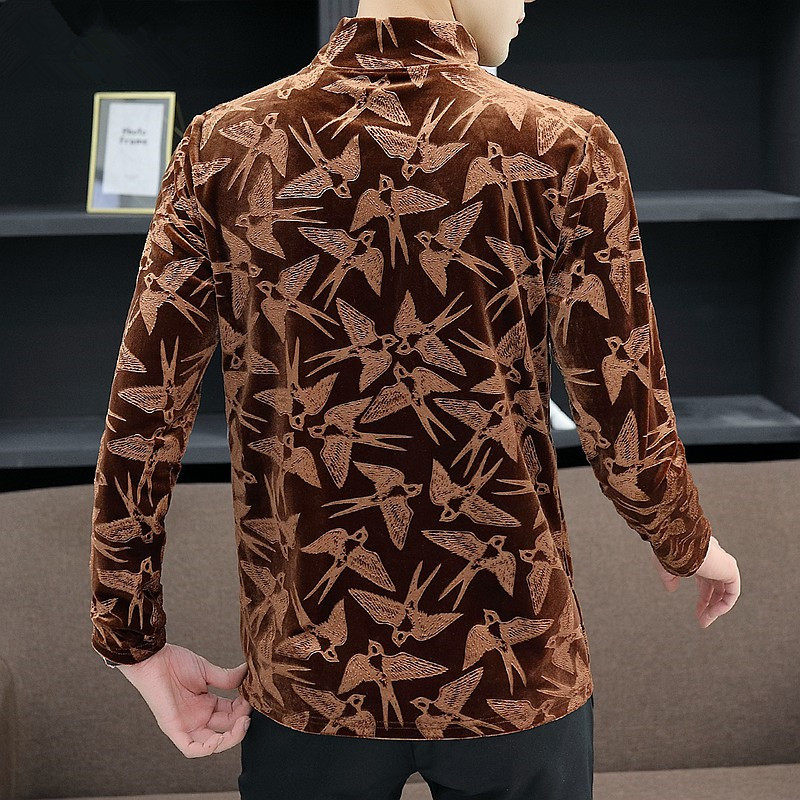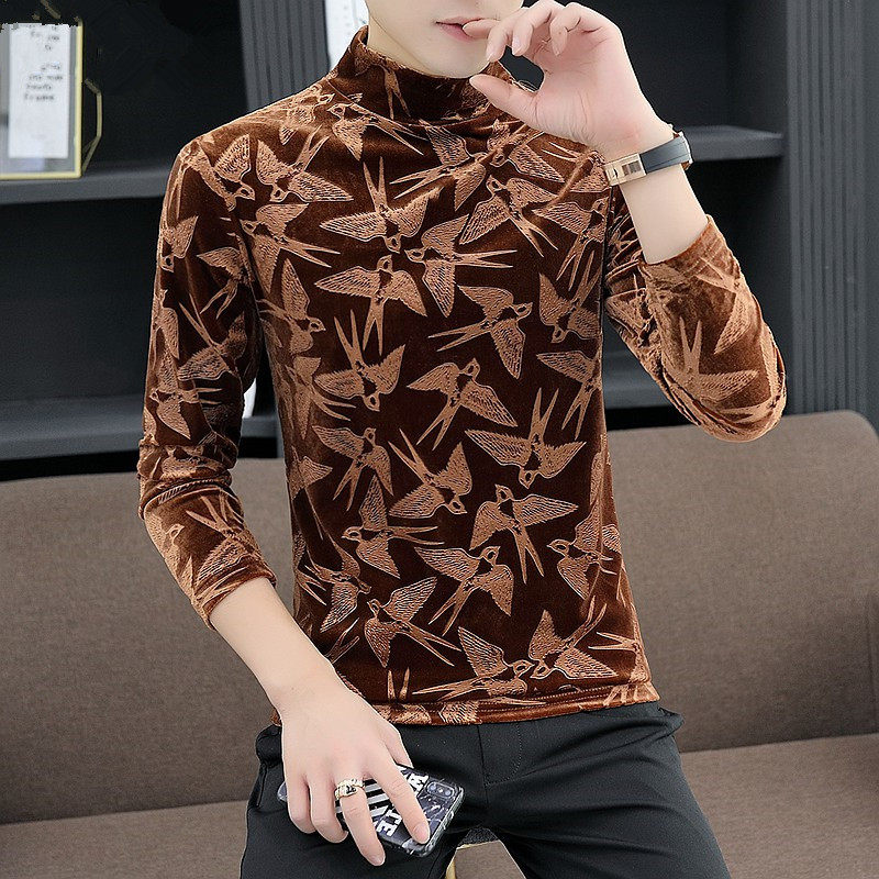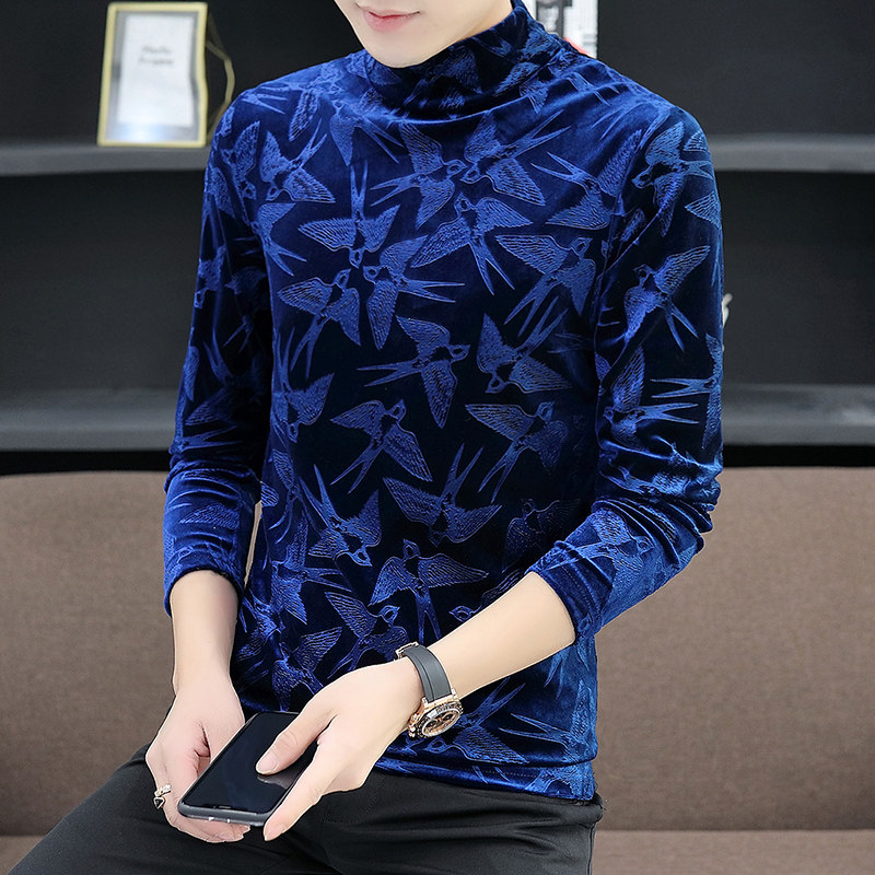 男士金丝绒长袖T恤春秋冬季半高领打底衫潮流帅气潮牌保暖上衣服