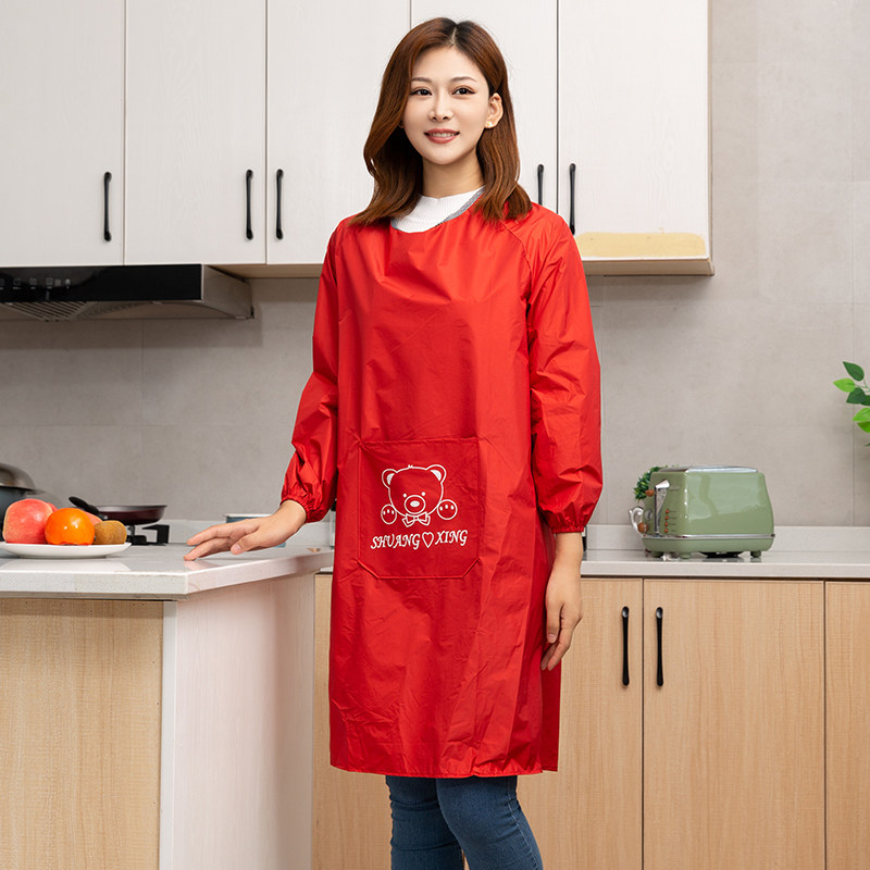 冬季加绒罩衣大人加厚长袖围裙防水韩版女时尚外套家用工作服定制