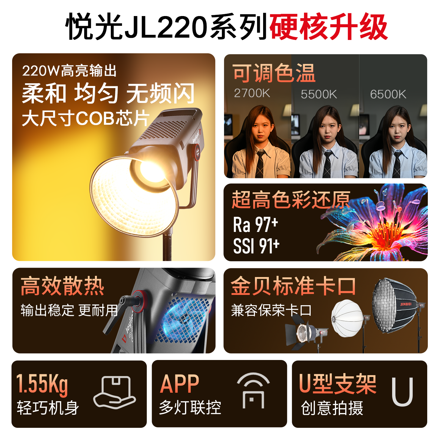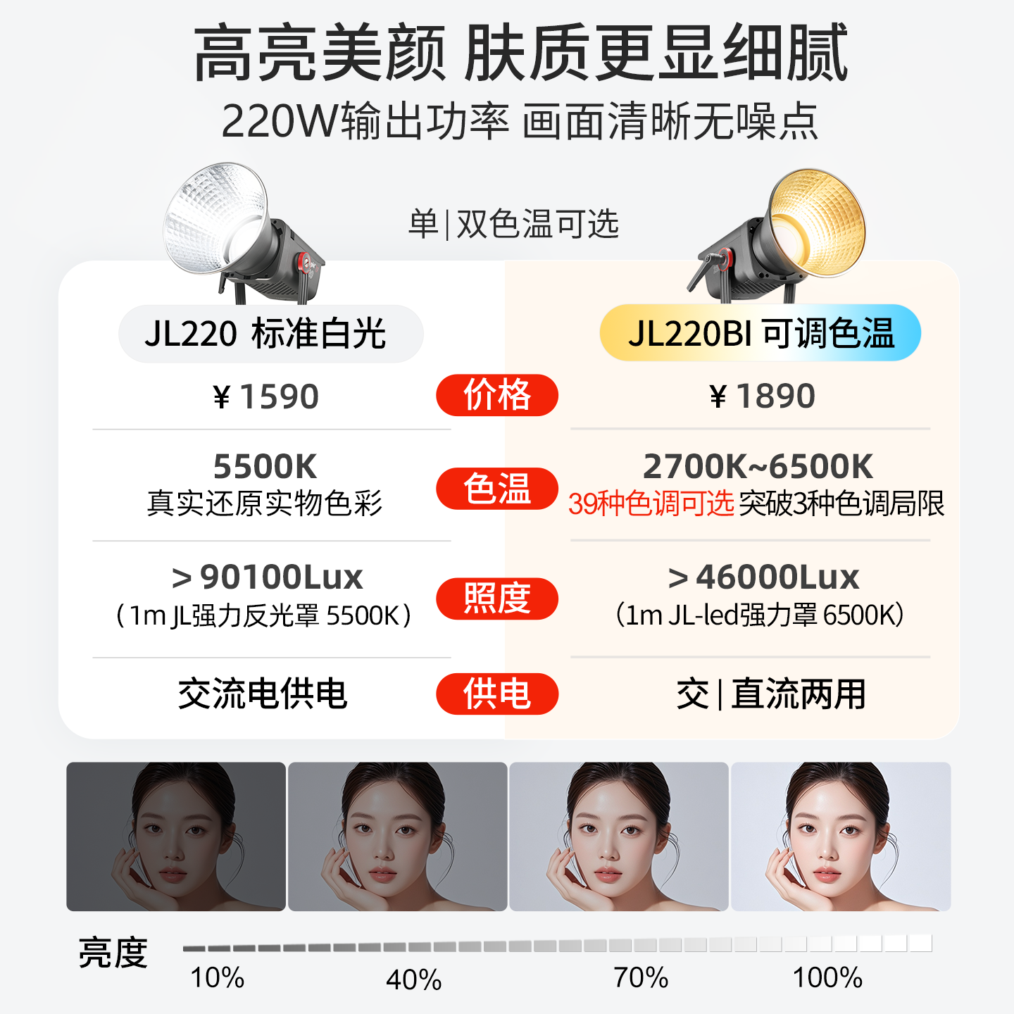 金贝JL220 220BI摄影直播补光灯220W LED影棚人像常亮灯主播专用双色温视频静物拍摄打光美颜柔光灯影视灯