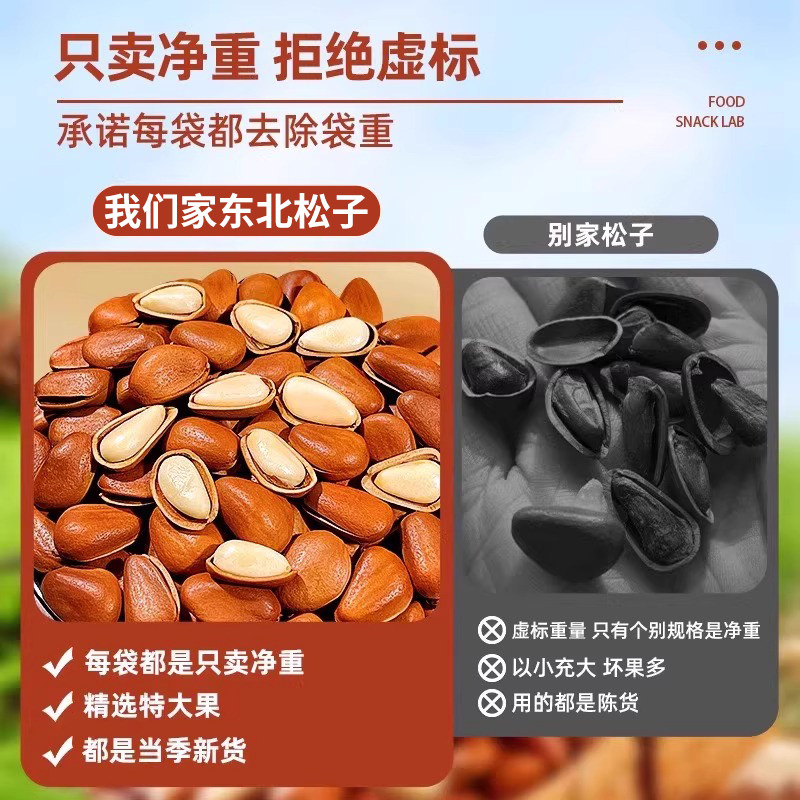 东北开口松子无添加新货大颗粒红松子坚果零食手剥松子孕妇坚果