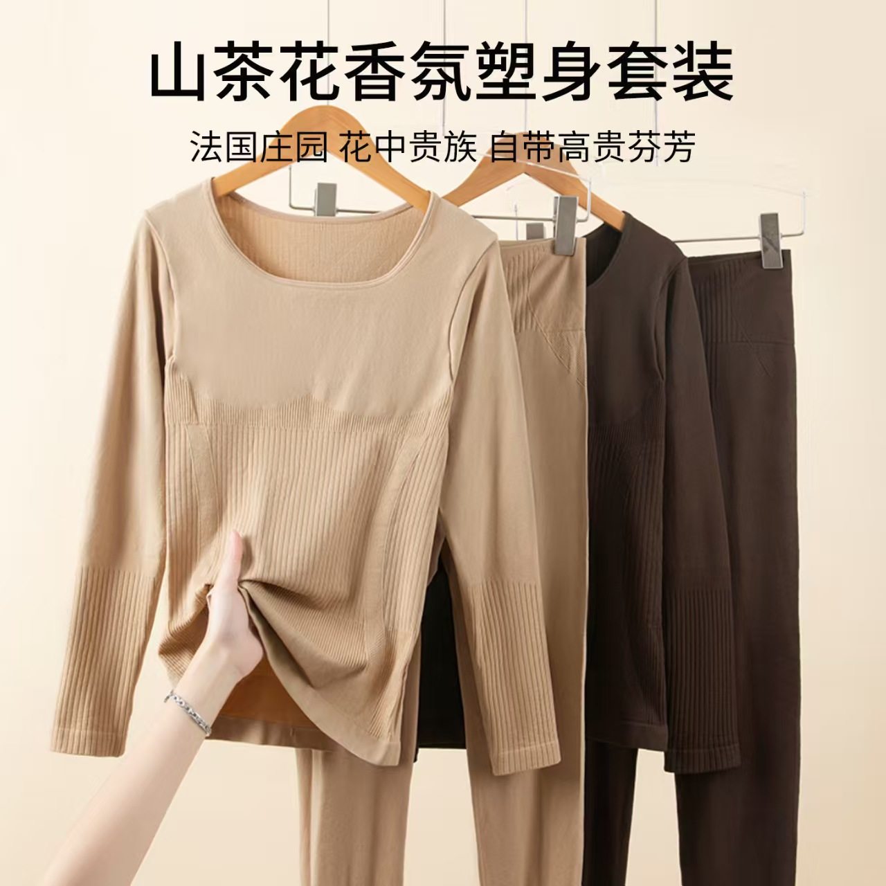 美体塑形保暖内衣套装山茶花香氛无痕修身显瘦打底秋衣秋裤女上衣