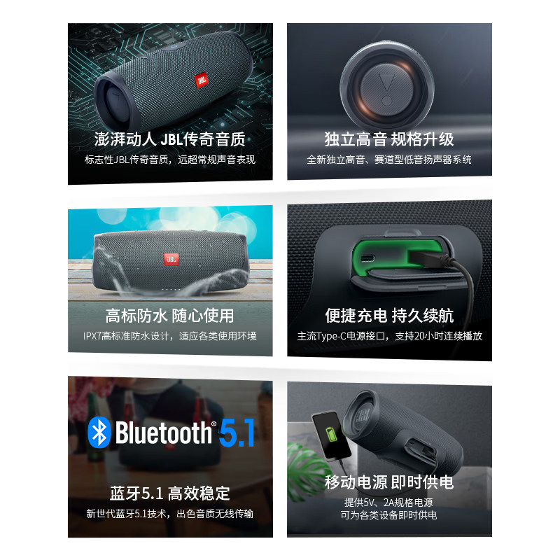【政府补贴】JBL Charge Essential2冲击波青春版二代蓝牙音响284