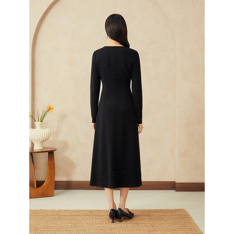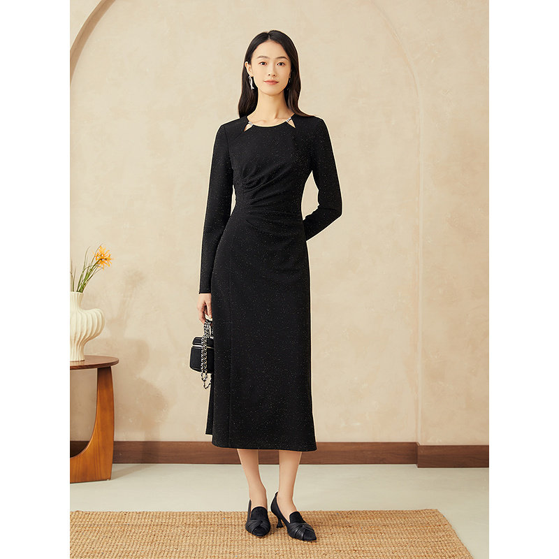 YINER音儿专选2025春季新款法式亮丝镂空领小黑裙收腰连衣裙