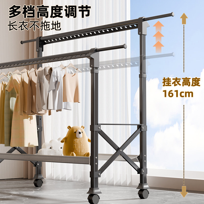 晾衣架落地家用卧室挂衣服简易室内凉衣杆折叠阳台伸缩晒衣帽架子