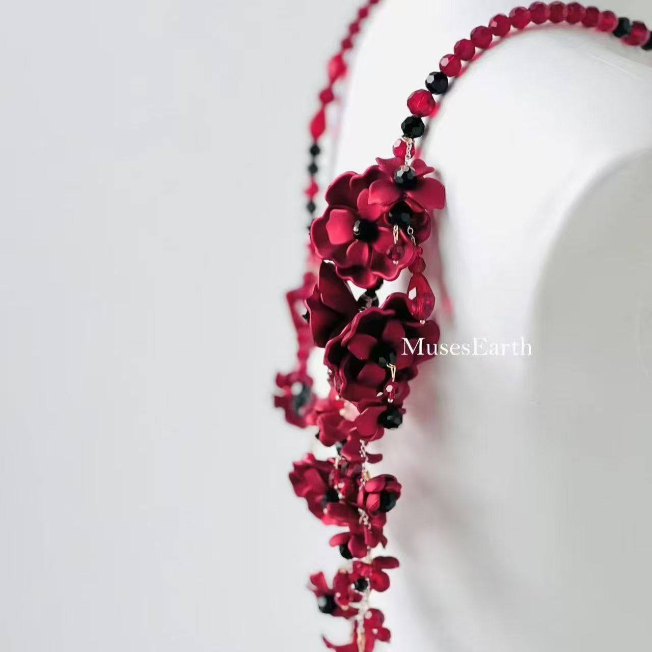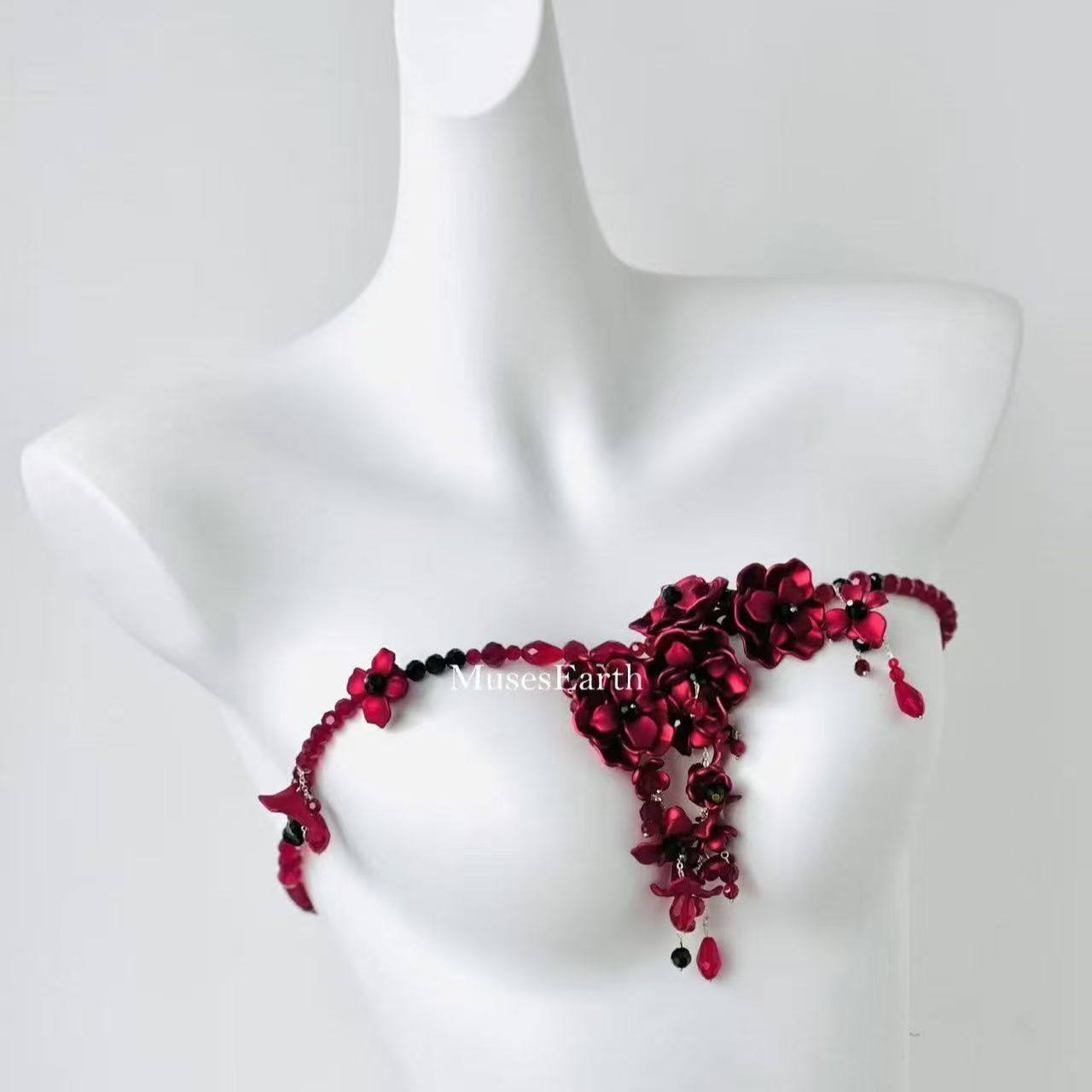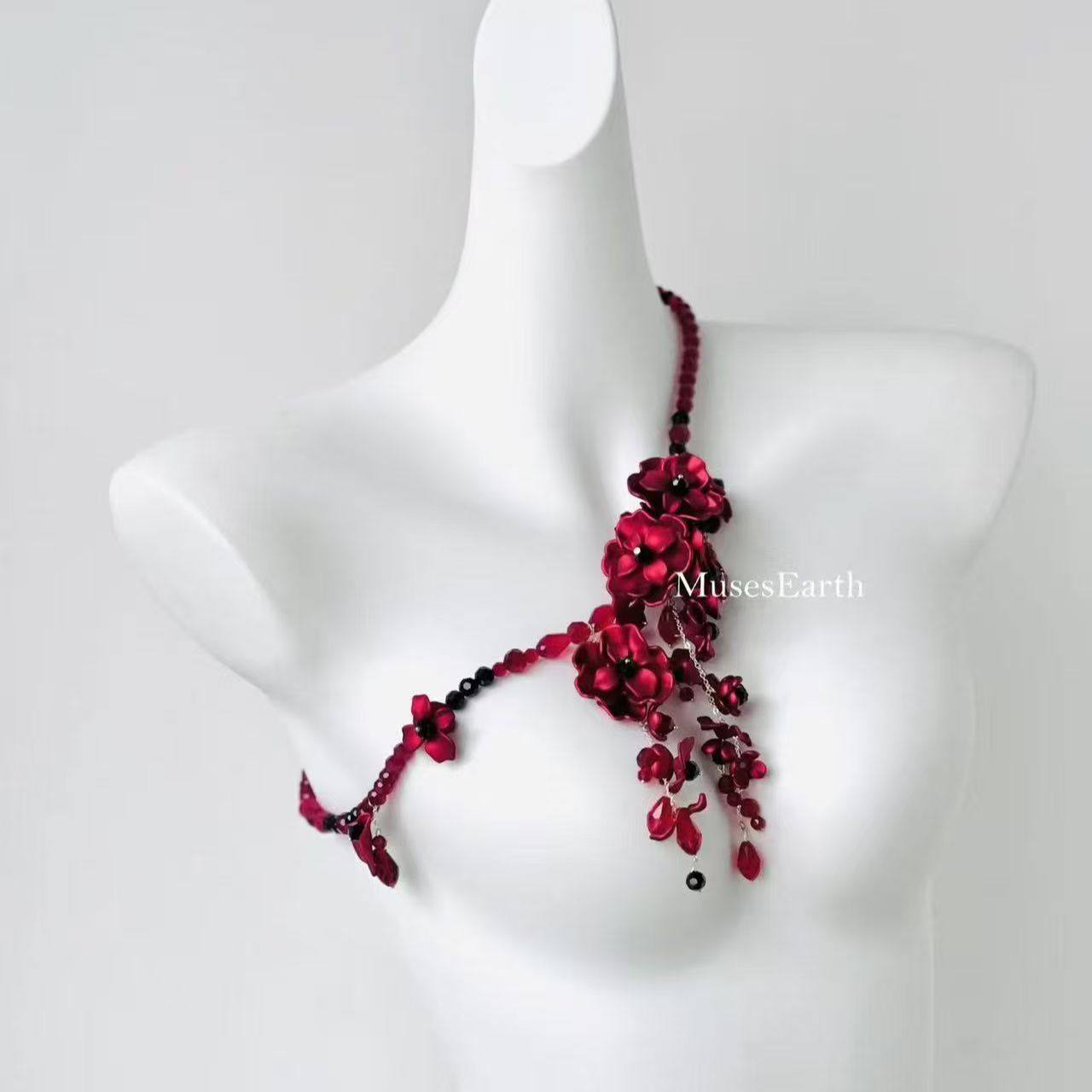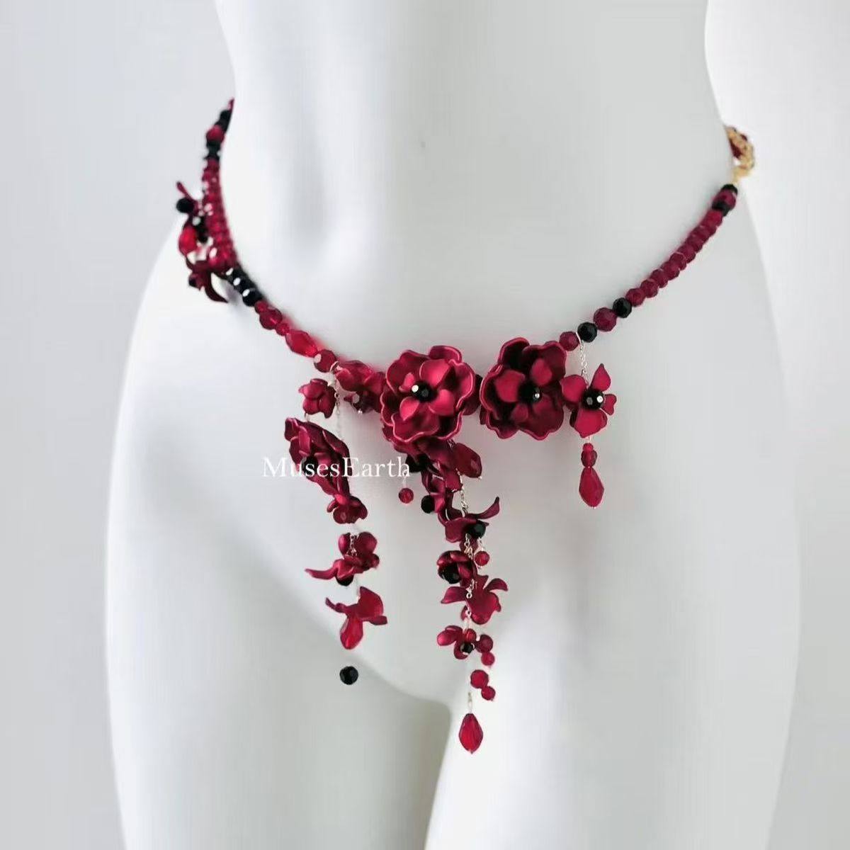 暗夜缨红腰链 红色繁花身体链可当项链女配饰哥特风配裙子腰封