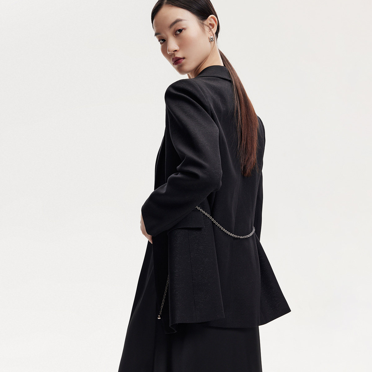 Vero Moda奥莱西装外套女秋冬新款腰链细闪精致翻领通勤优雅上衣