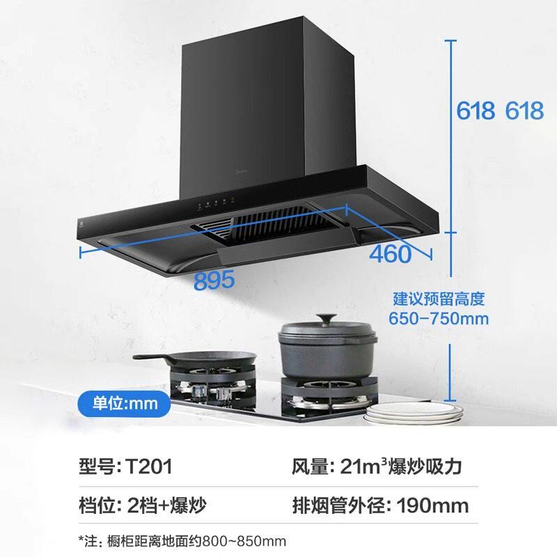 Midea/美的 CXW-268-T201家用自动清洗欧式顶吸21大吸力油烟机