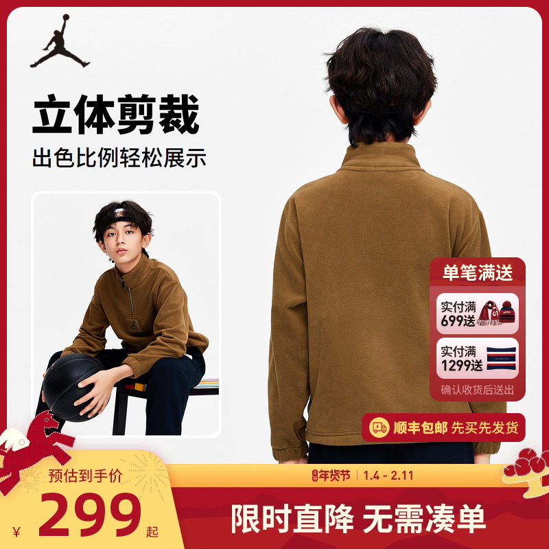 Jordan儿童装男童无帽卫衣绒衫冬季中大童半拉链上衣潮JD2342062