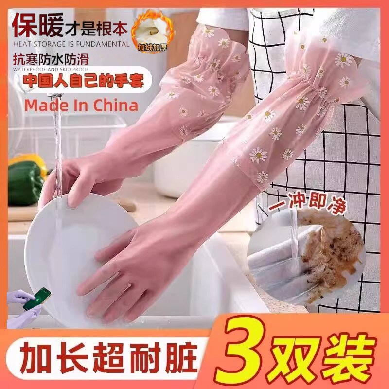 加绒手套洗碗专用手套家务厨房女士加厚清洁刷碗洗衣防水加绒冬季