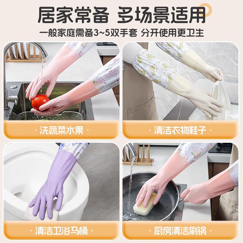 洗碗手套加绒加厚保暖款男女厨房耐用橡胶乳胶皮洗衣加长手套家务