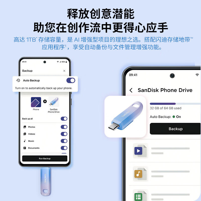 闪迪创作者手机u盘256GB可伸缩Type-C小巧便携加密金属优盘USB3.2