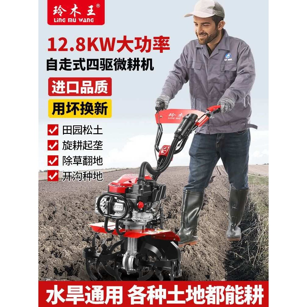 玲木王微耕机农用小型汽油旋耕机多功能耕地打田机锄草翻土开沟机