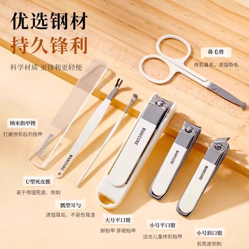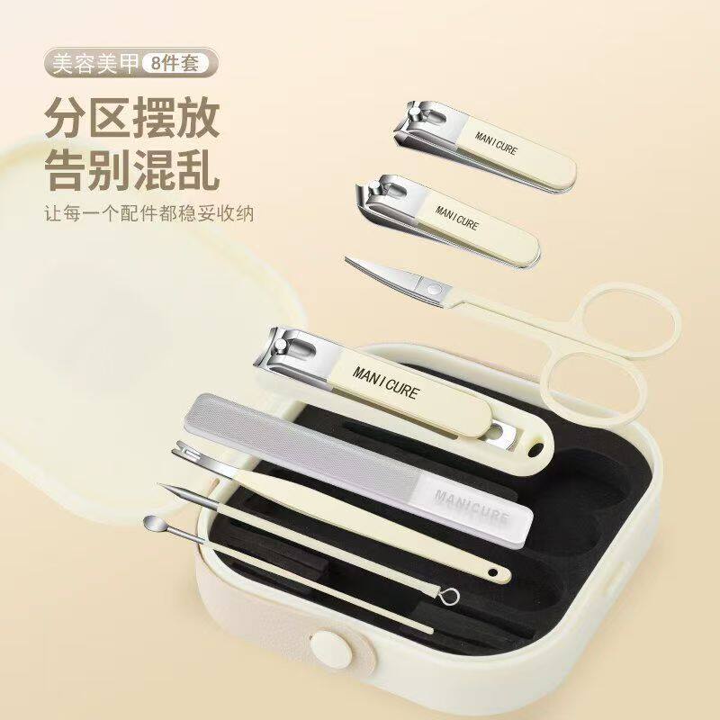 防飞溅指甲刀套装便携斜口修剪指甲剪刀美甲修甲指甲钳鼻毛收纳盒