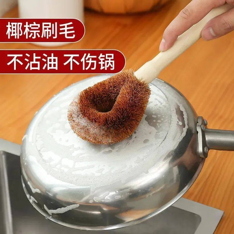 天然椰棕锅刷木柄洗锅刷锅长柄刷锅刷子不沾油厨房洗碗刷家用