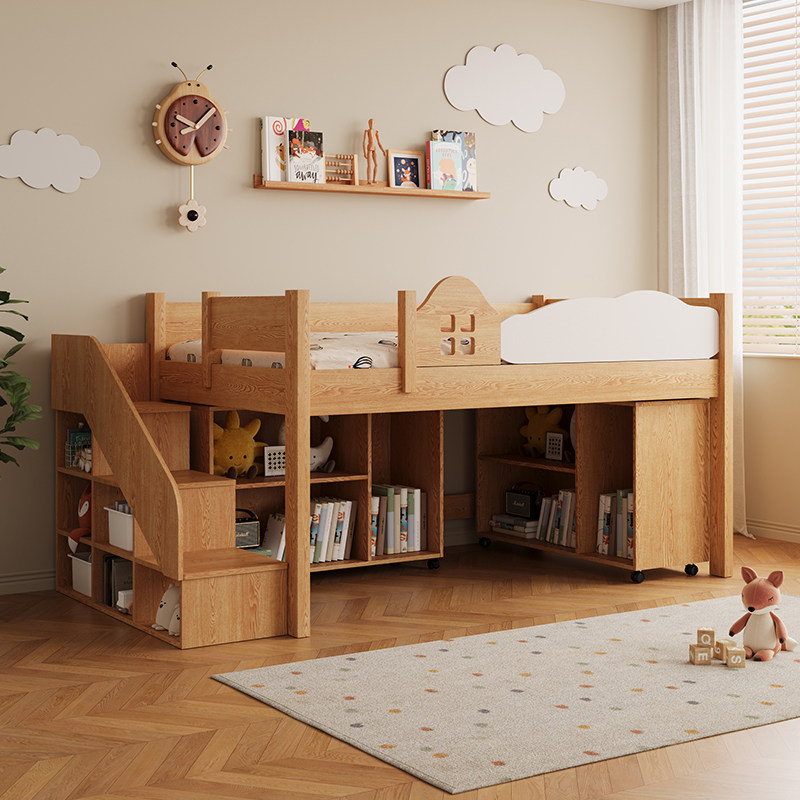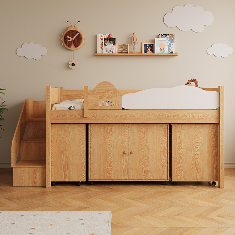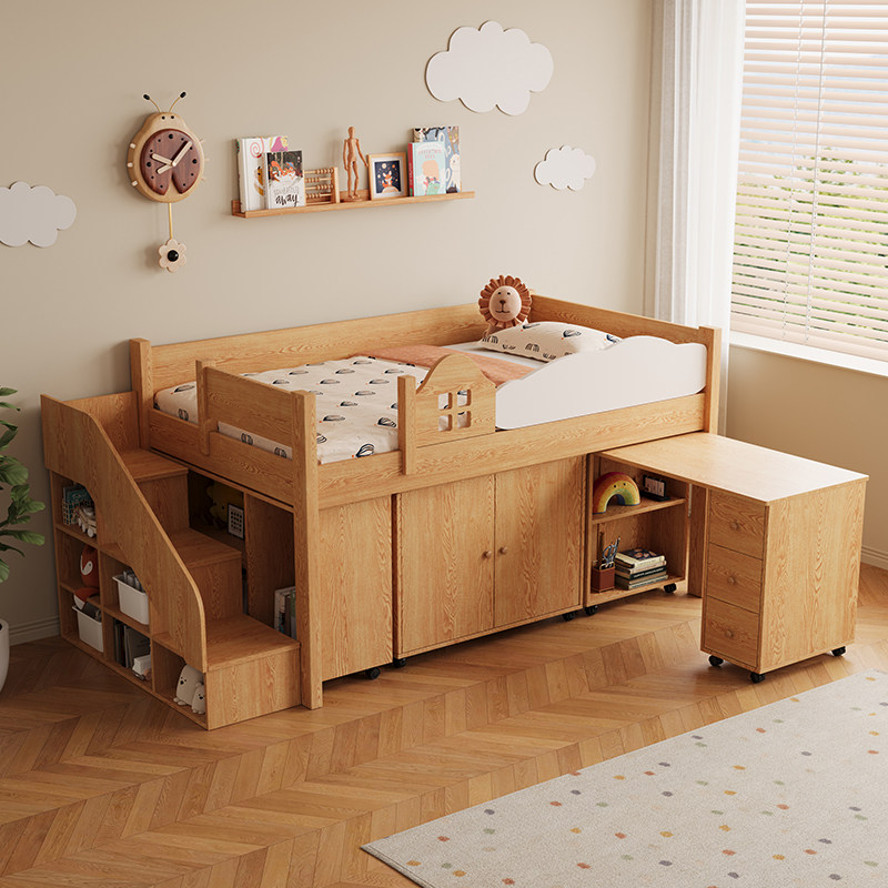 实木抽拉半高储物床男女孩书桌衣柜一体省空间上下组合双层床