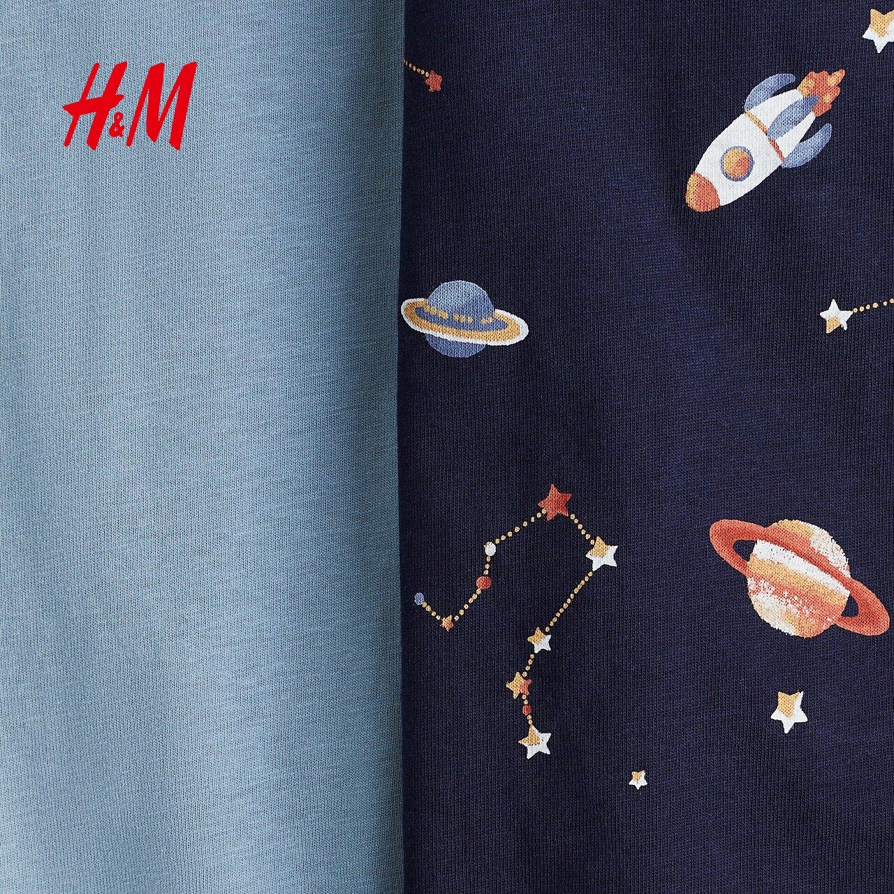 HM童装婴儿男婴女婴连体衣2件装2025年冬季新款印花睡衣1085413