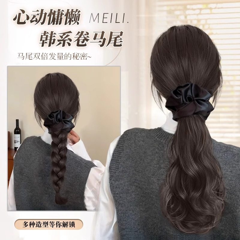 假发辫子女仿真发抓大波浪韩系卷马尾低扎自然发圈马尾辫慵懒蓬松