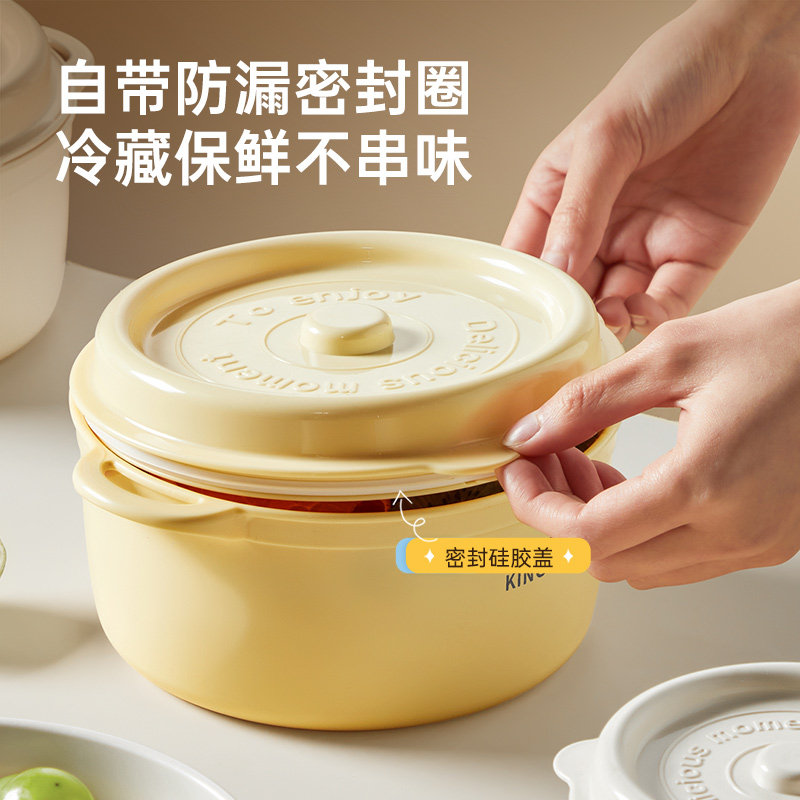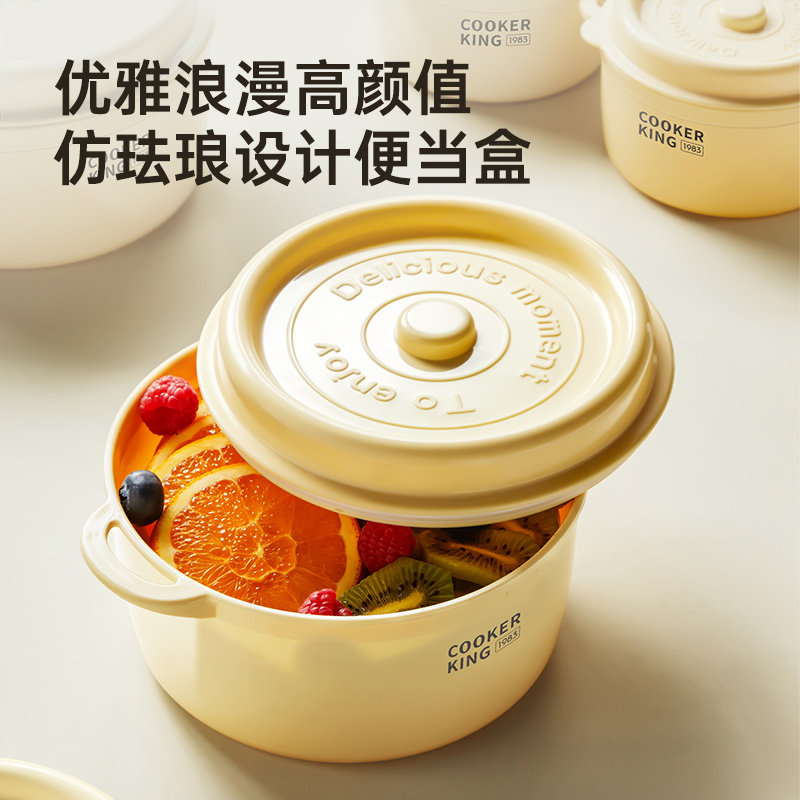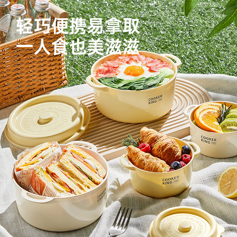 炊大皇塑珐琅圆形便当盒保鲜盒食品级收纳盒可微波泡面碗饭盒搪瓷