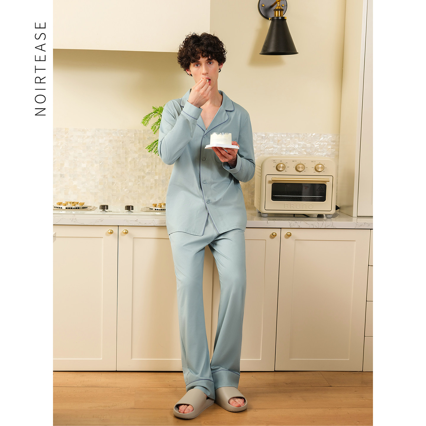 NoirTease春秋薄款索罗娜抗菌棉质简约风睡衣男士长袖长裤家居服
