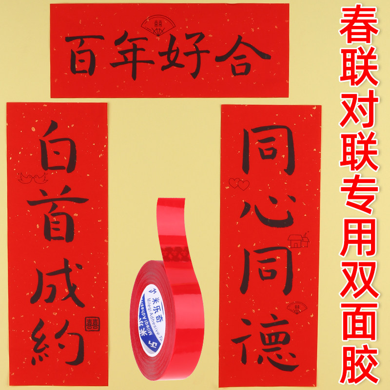 贴对联专用双面胶家用自粘无痕粘胶条墙面春联门联专用胶带双面贴粘对联易撕无残留固定年画双面婚房婚车胶