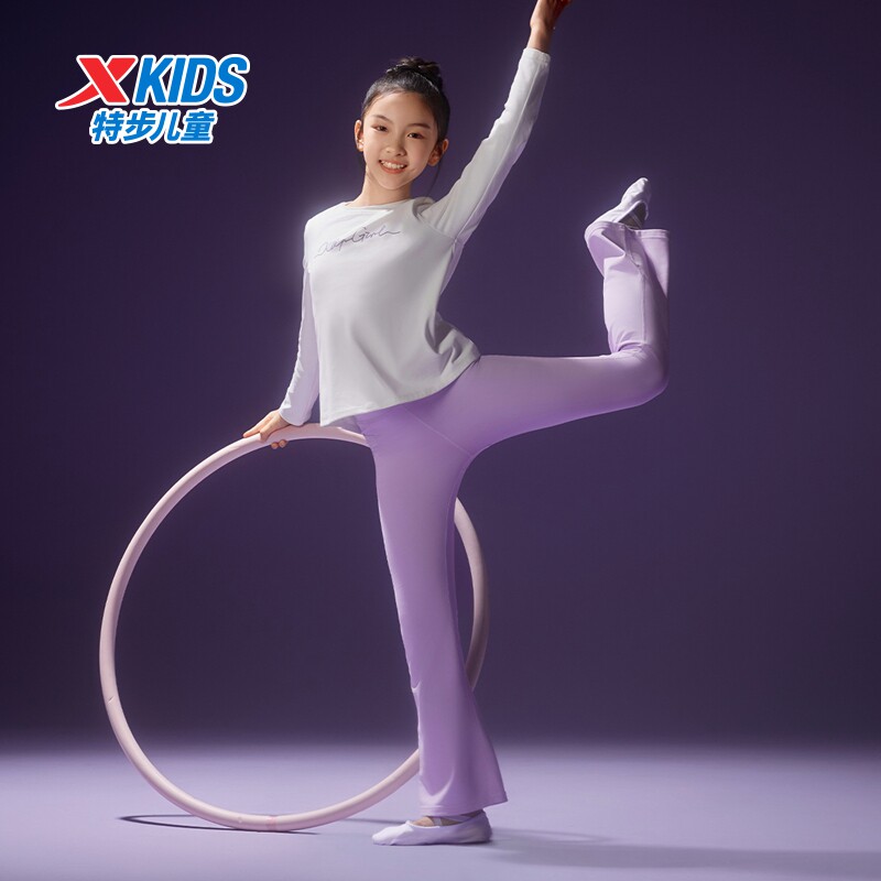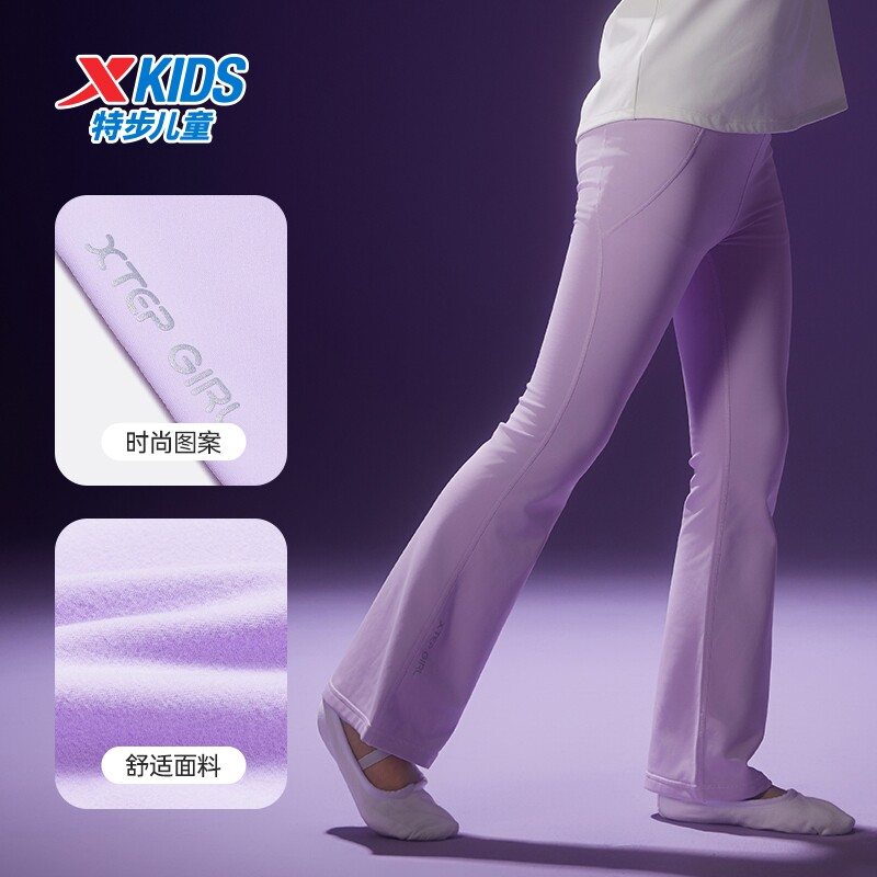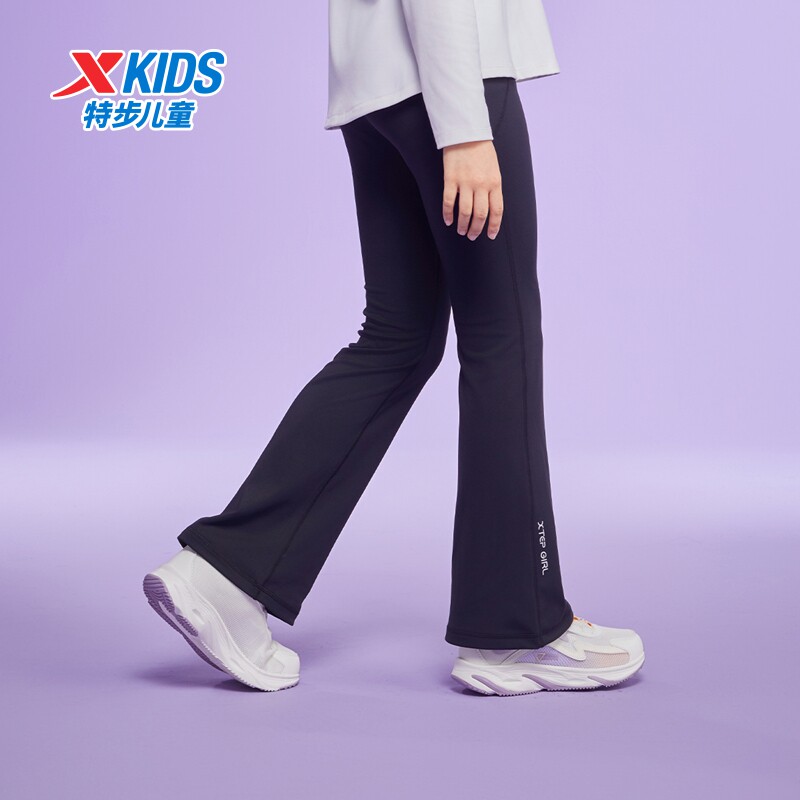 特步童装秋冬新款儿童运动长裤女童小中大童弹力轻柔百搭针织长裤