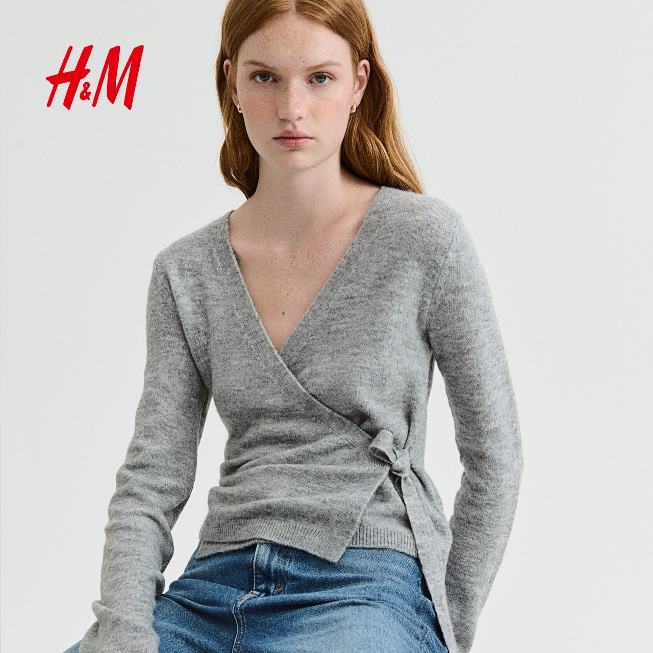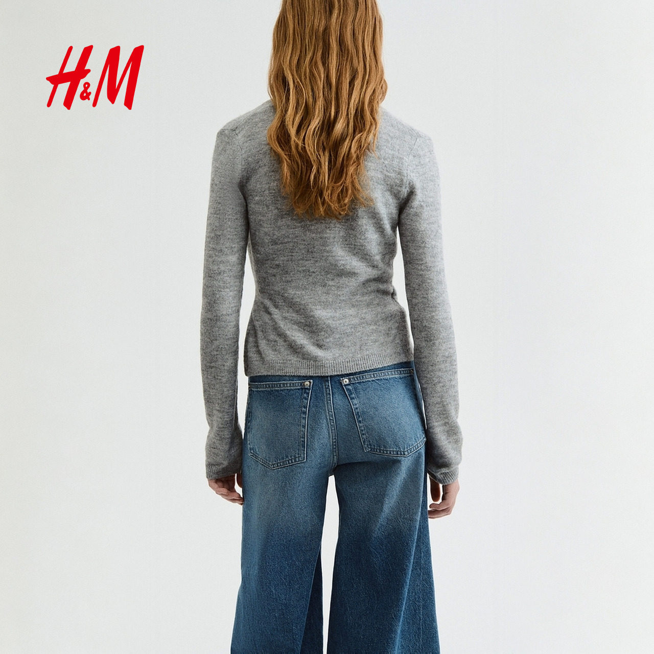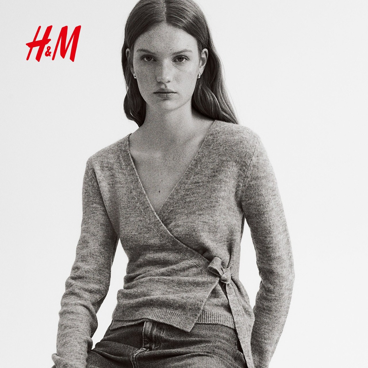 HM女装毛针织衫2025年新款row系针织衫保暖潮流裹身开衫1302138