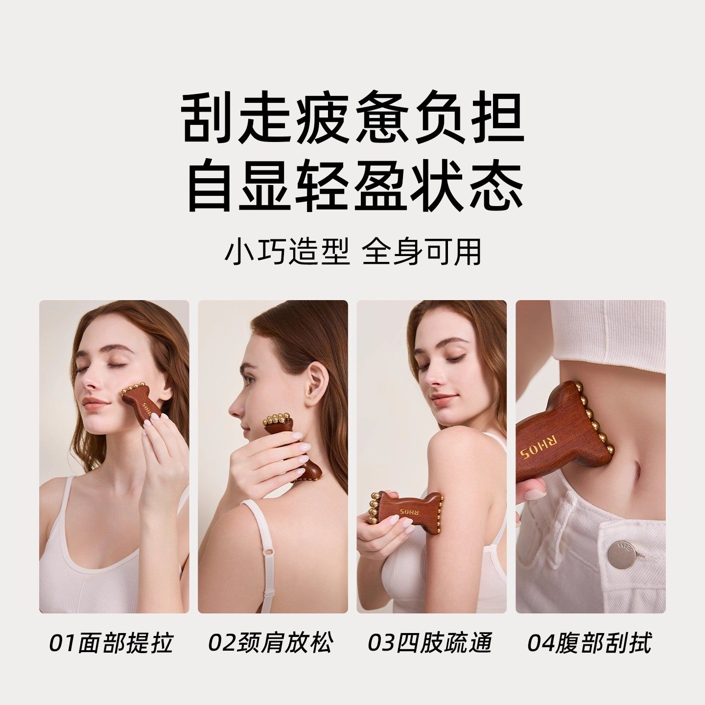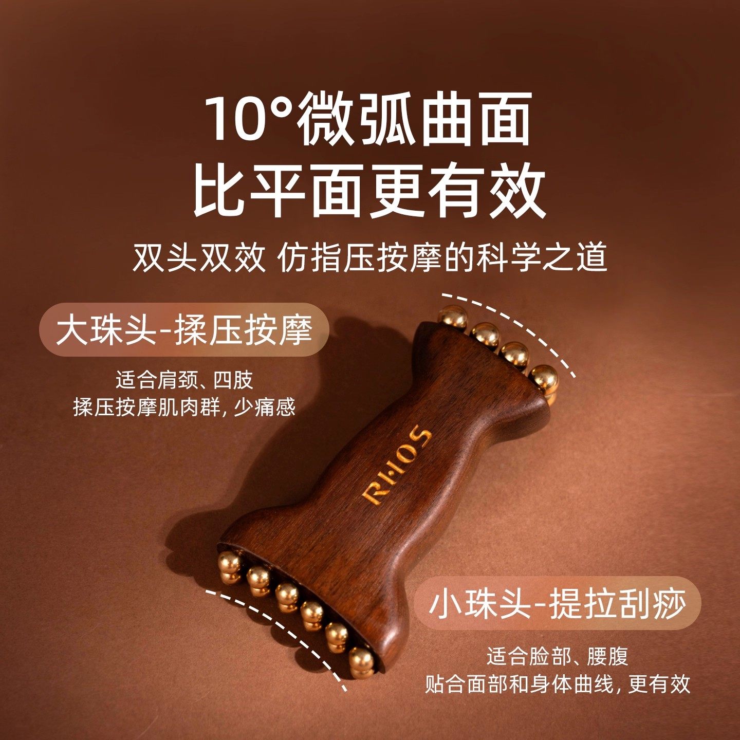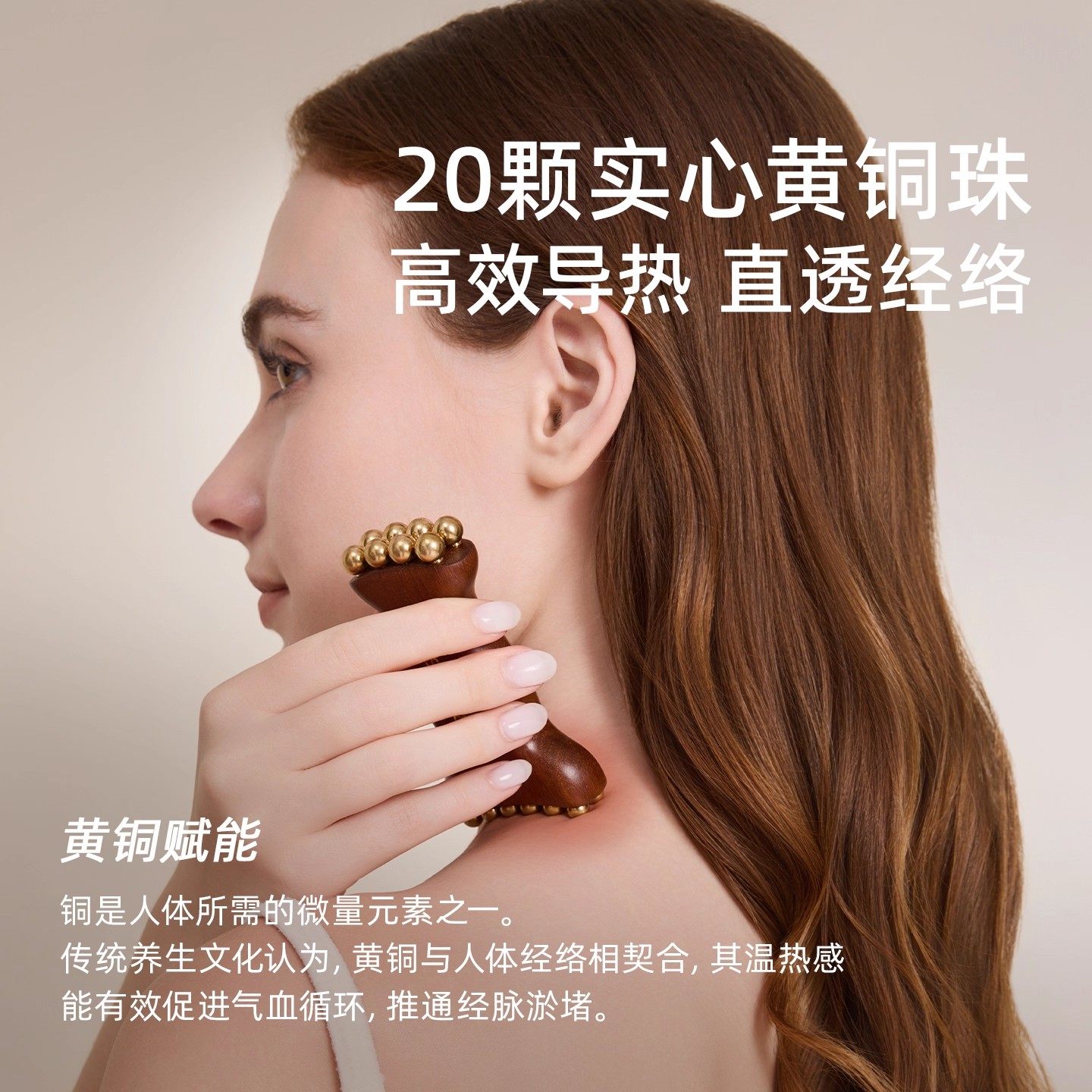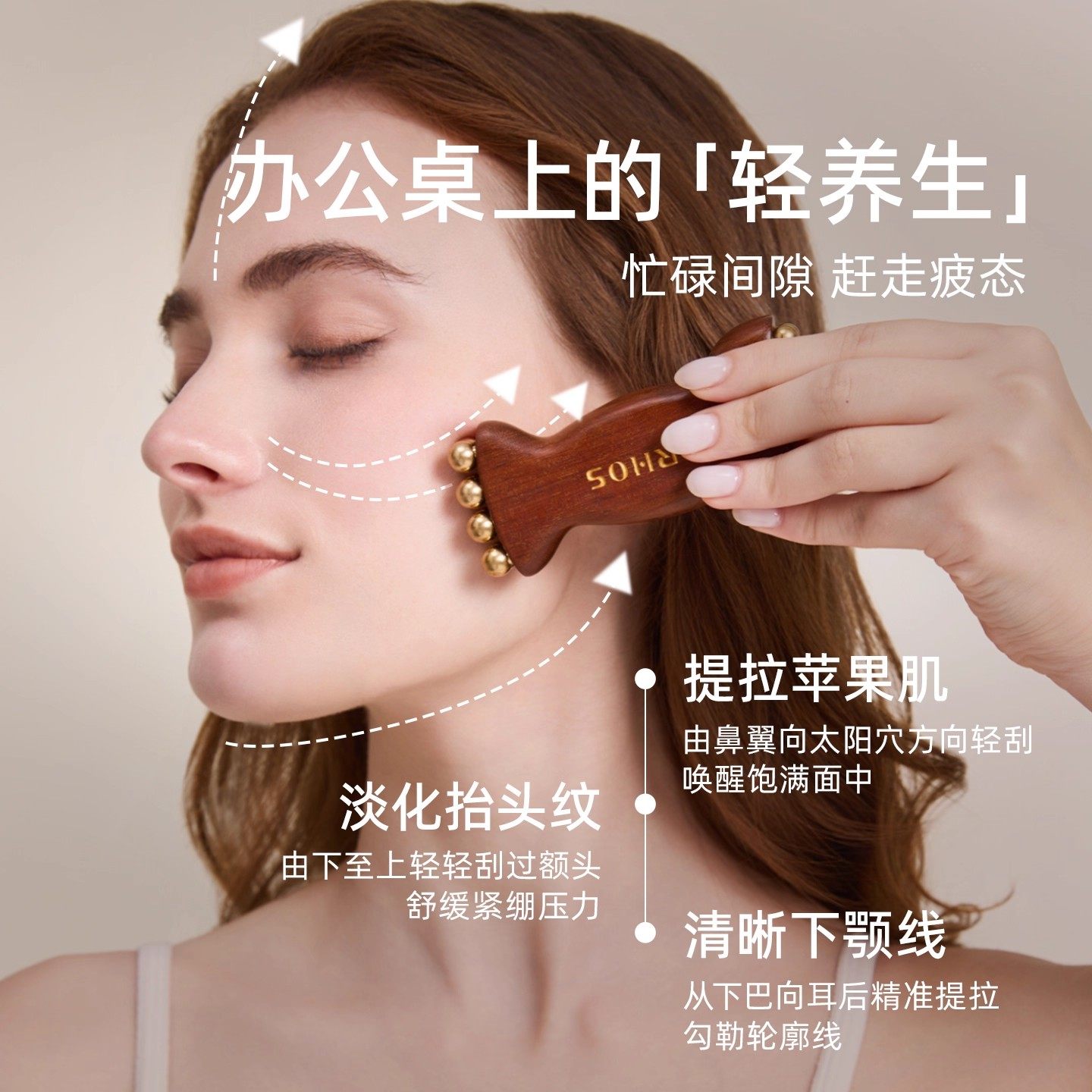 RHOS黄铜经络按摩梳面部刮痧朱雀三啄小莲蓬眼部周揉刷棒滚珠神器