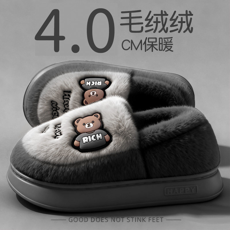 棉拖鞋女款秋冬天2024新款毛拖家居保暖加绒厚底毛绒情侣软底拖鞋