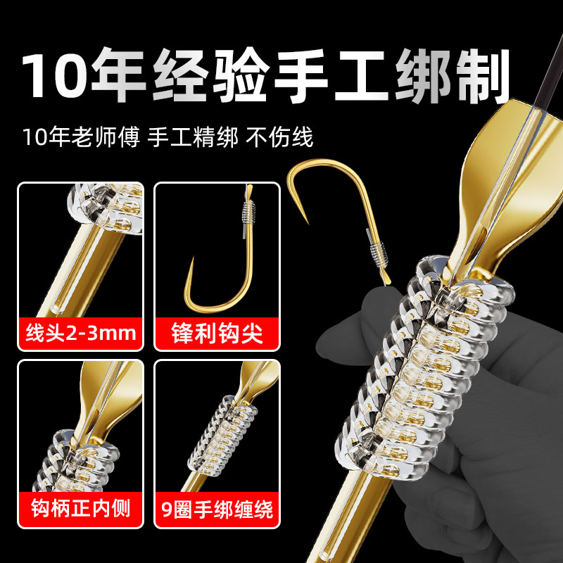 鱼钩绑好短子线双钩成品套装钓鱼袖钩金海夕金袖渔具野钓鲫鱼钩