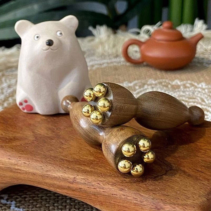 小莲蓬黄铜金丝檀木面部按摩器脸部美容眼部拨筋棒点穴护肤工具