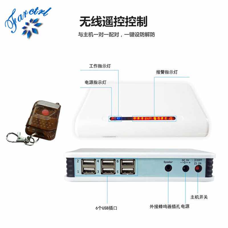 多路手机防盗器 一拖六平板电脑柜台体验充电报警展示架 防盗底座