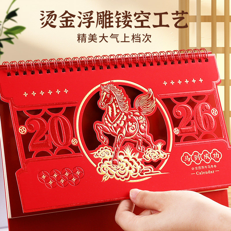 马年台历2026年新款商务烫金镂空创意打卡记事桌面摆件精美日历高颜值高档公司企业送客户广告定制可印logo