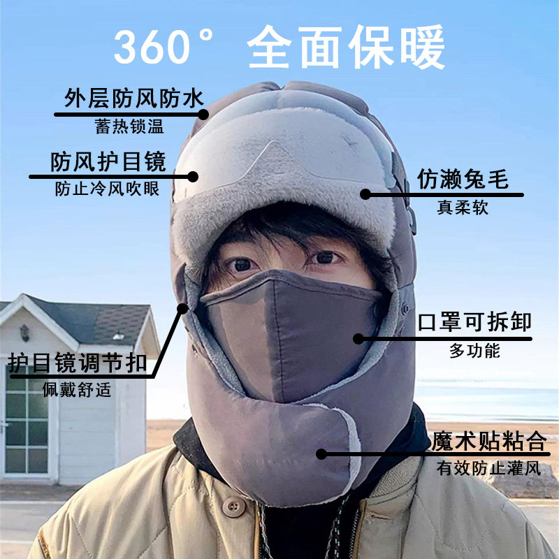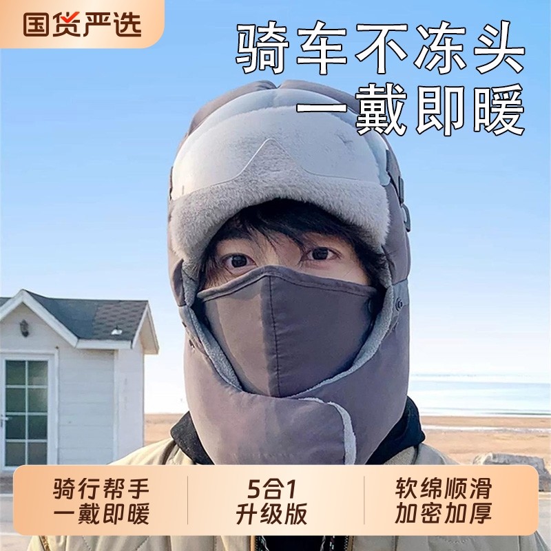 东北骑行防寒面罩雷锋帽帽子男冬天男士冬季男款电动车保暖防风棉