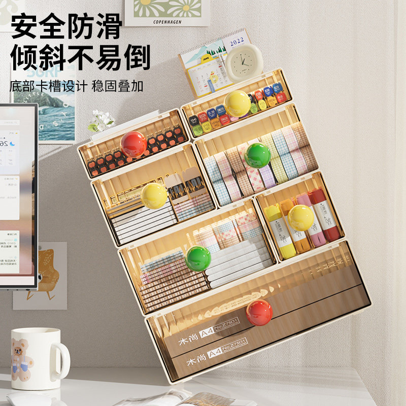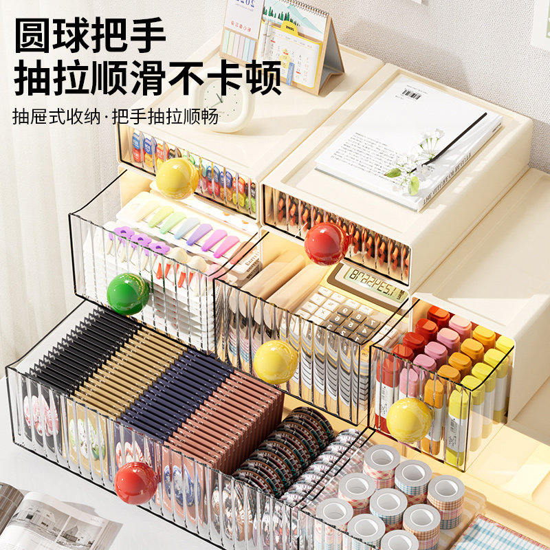 桌面收纳盒抽屉式学生书桌书本整理盒文具亚克力多层办公桌置物架