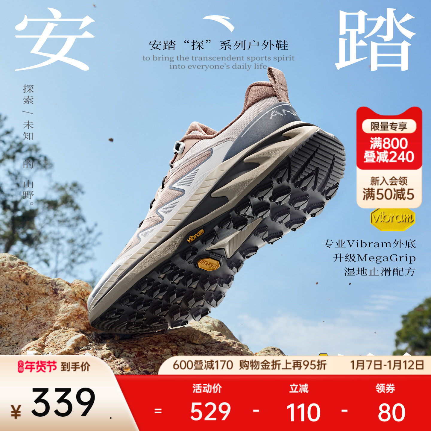 安踏探野PRO V2丨Vibram大底专业户外越野缓震耐磨跑步鞋男女同款