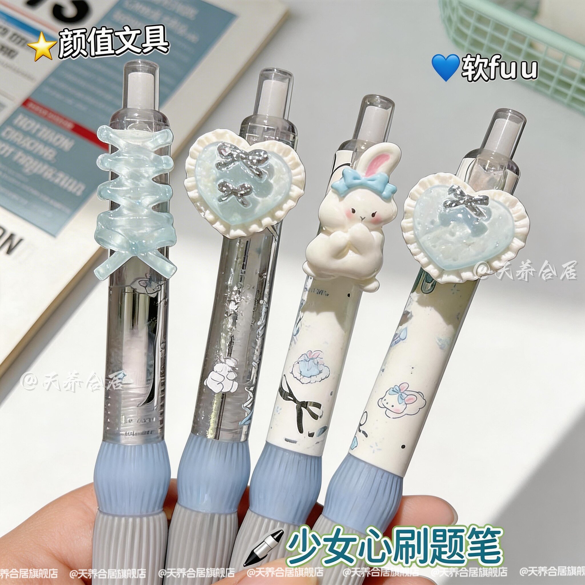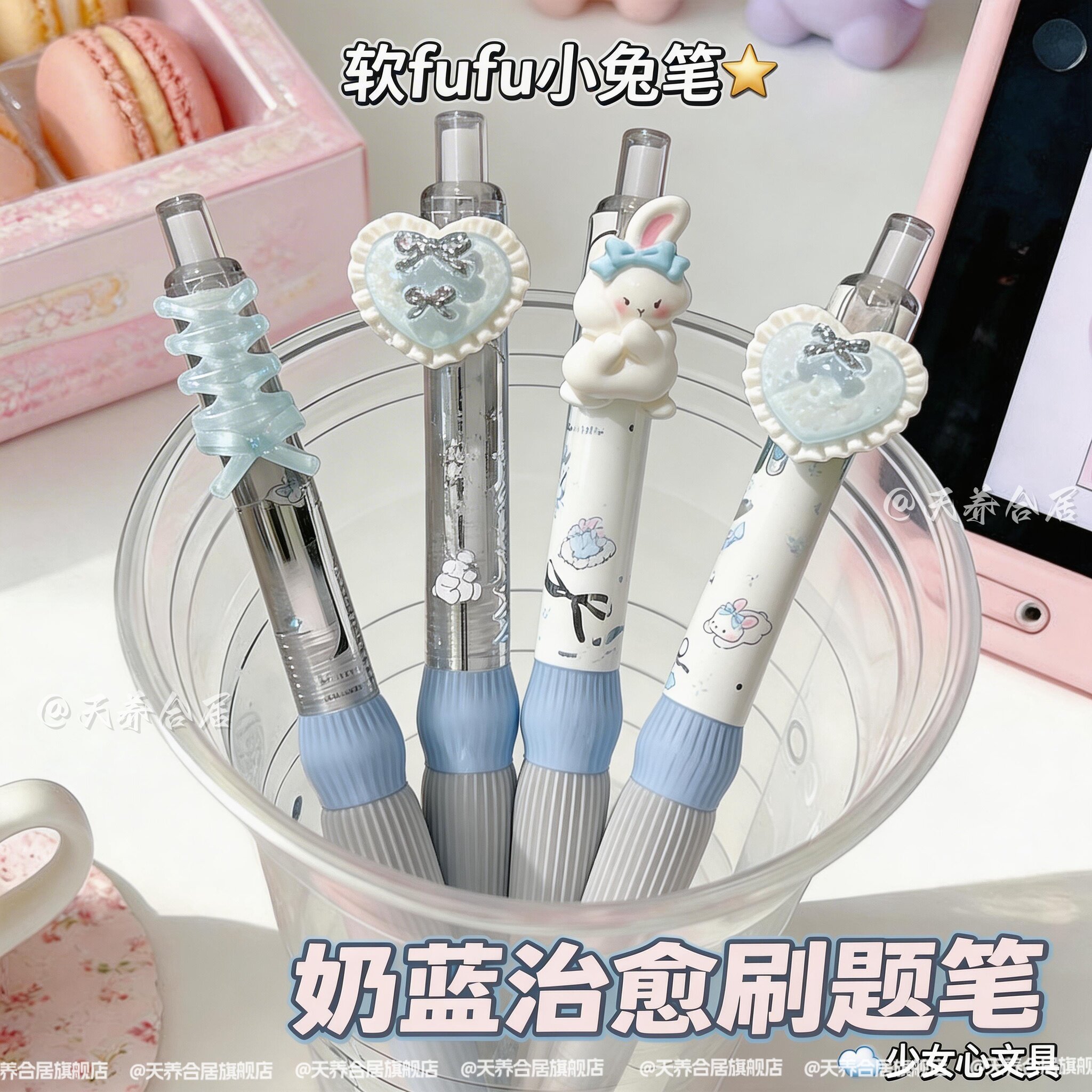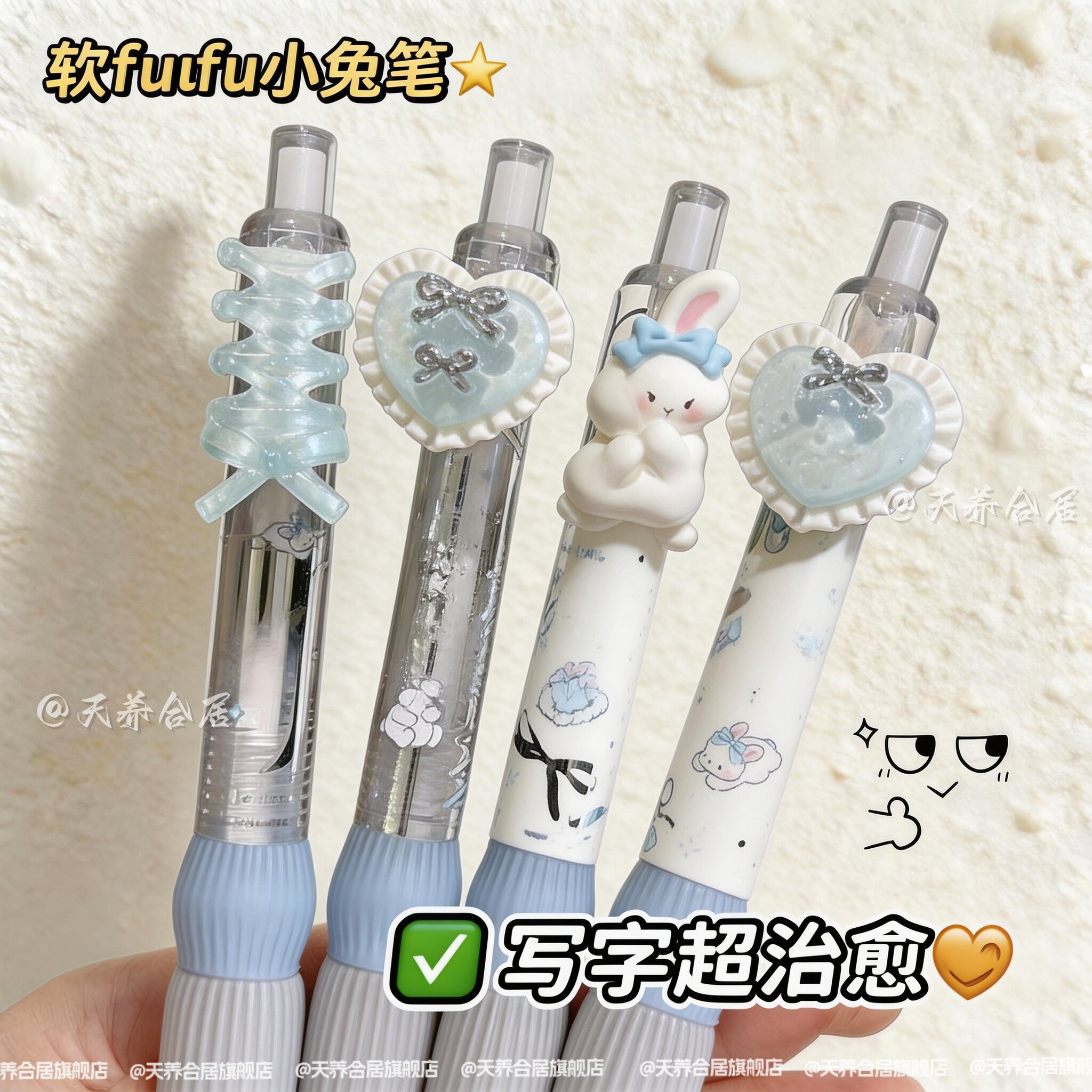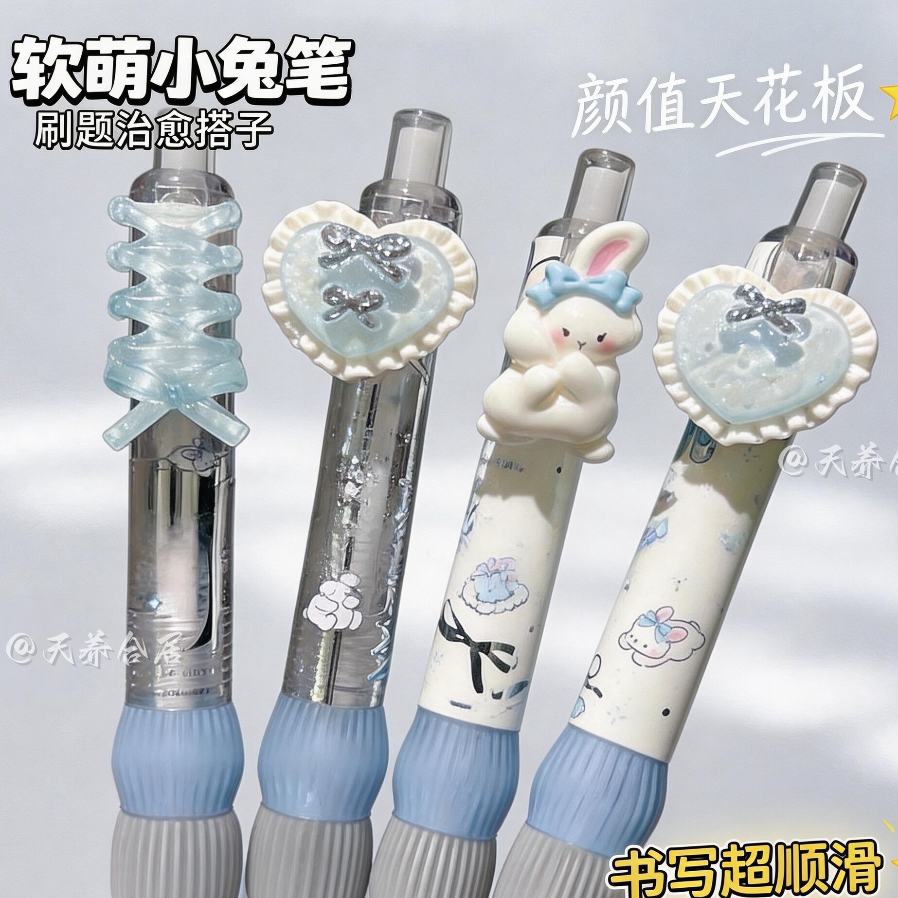 小蓝兔兔甜心系挂件笔52026新款中性笔按动式速干学习塑料卡通ins风高颜值少女心学生考试刷题笔st头黑色