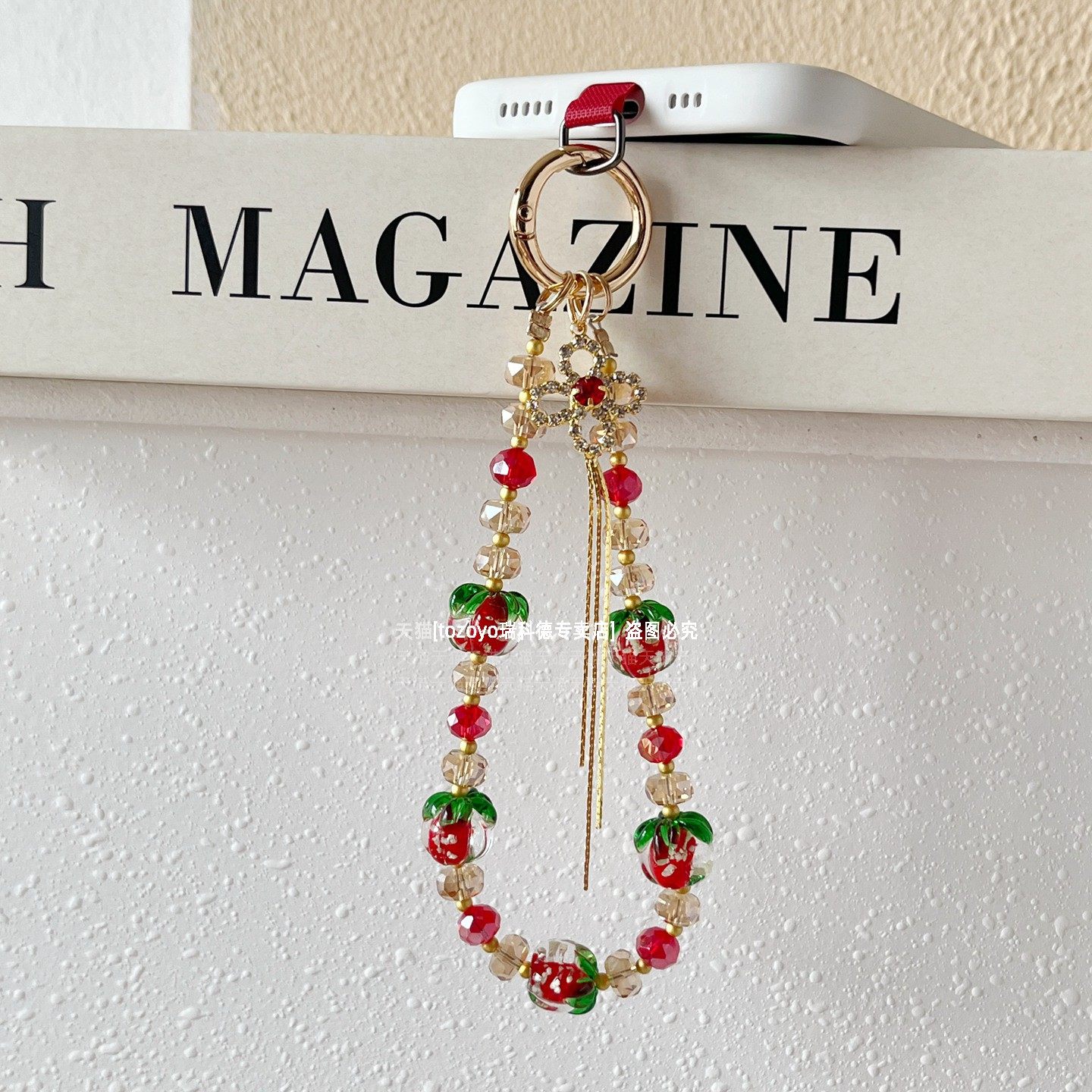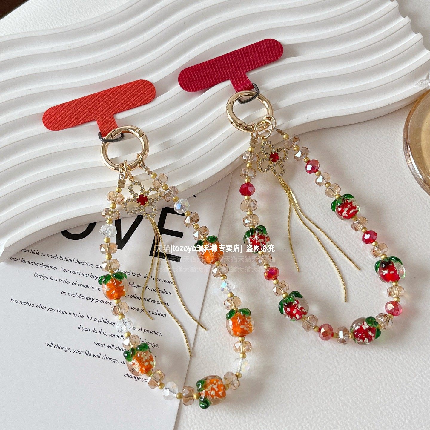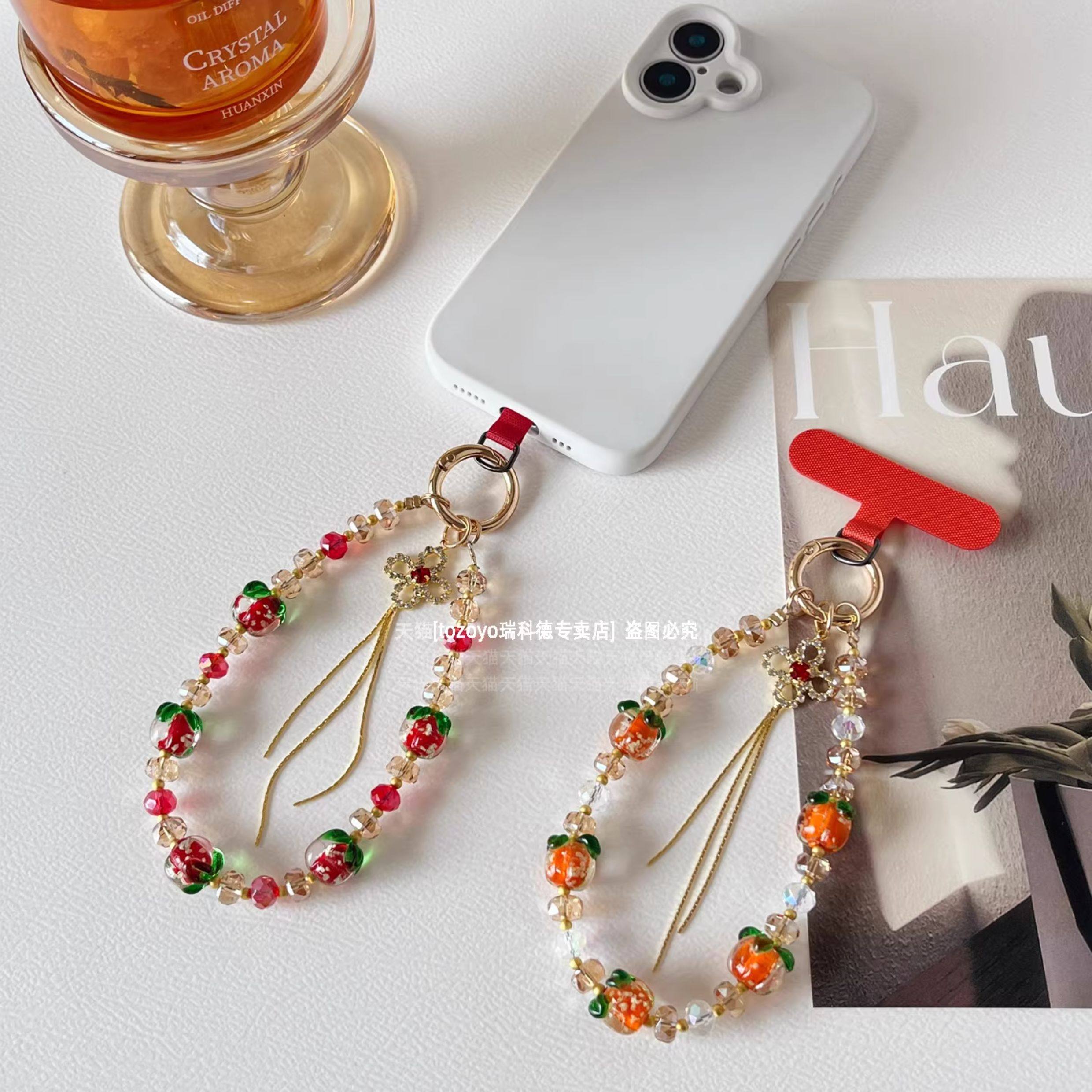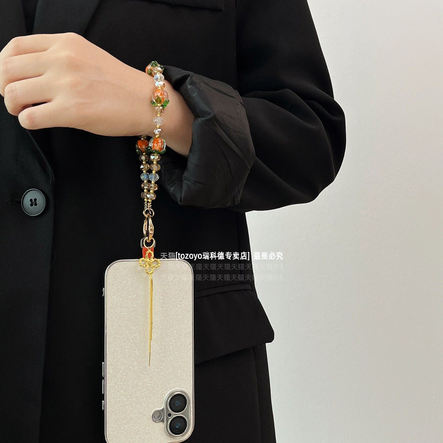 柿柿如意新中式手机链精致四叶草流苏挂链手腕款黄水晶琉璃串珠手链玄学国潮挂件链条柿子高端钥匙扣包挂饰壳