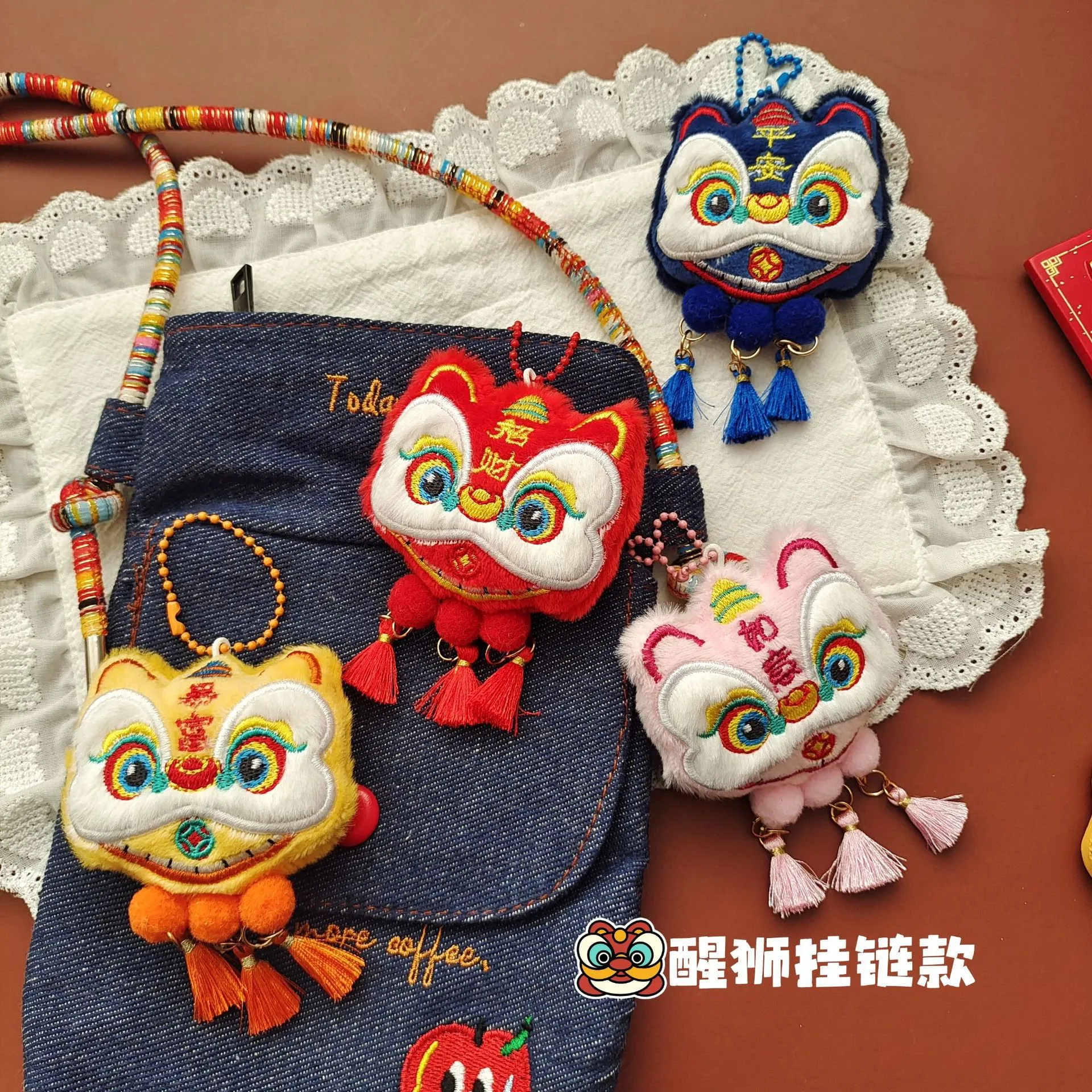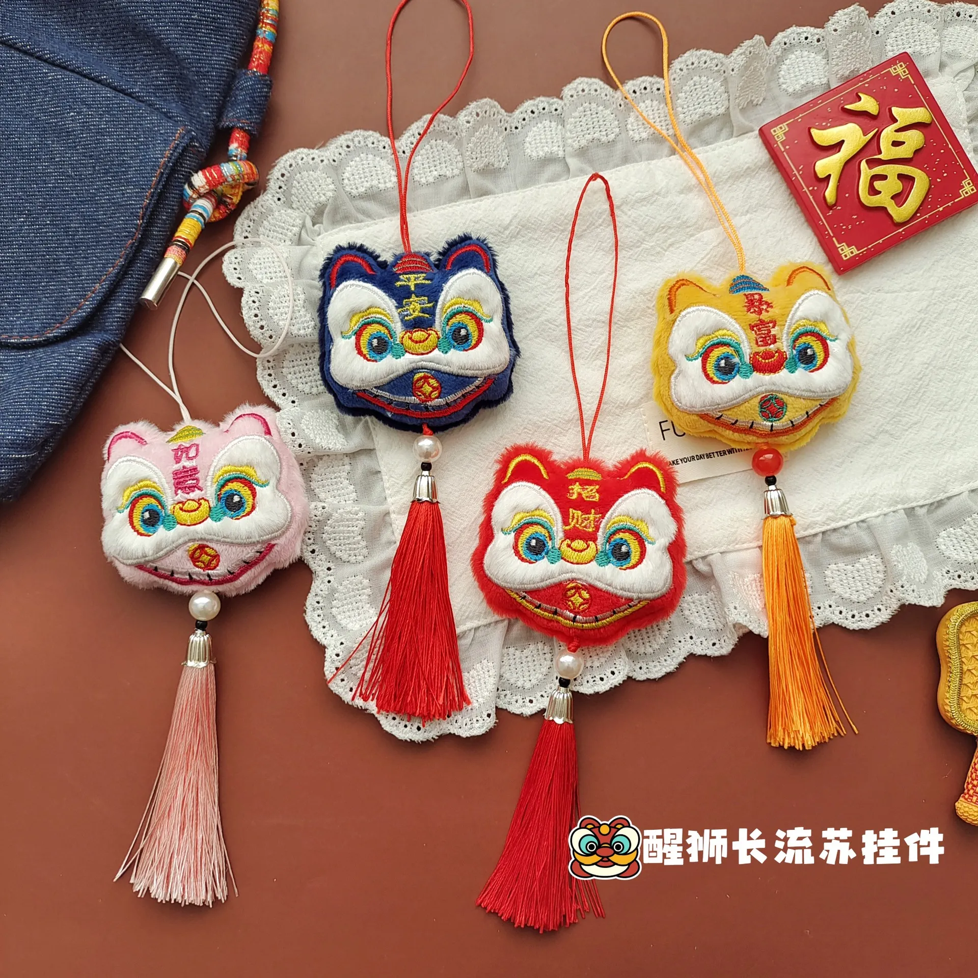 原创新年款流苏醒狮公仔挂件可爱毛绒国风玩偶饰品包包装饰挂坠