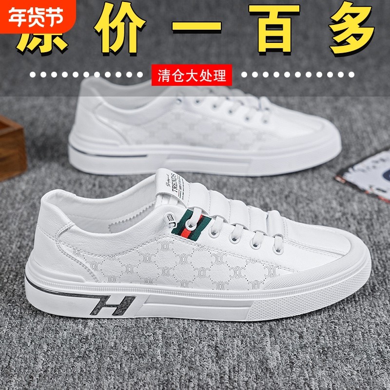 男鞋2024新款夏季透气防水百搭运动小白板鞋休闲皮鞋一脚蹬潮鞋子
